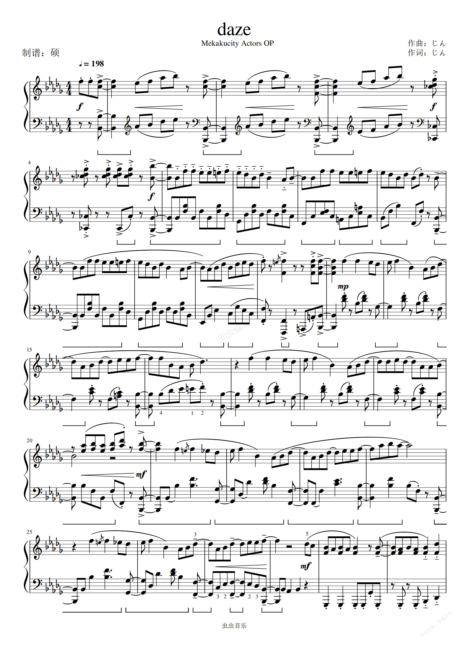 钢琴谱:《DAZE》完美还原 (动漫 目隐都市的演绎者主题曲)