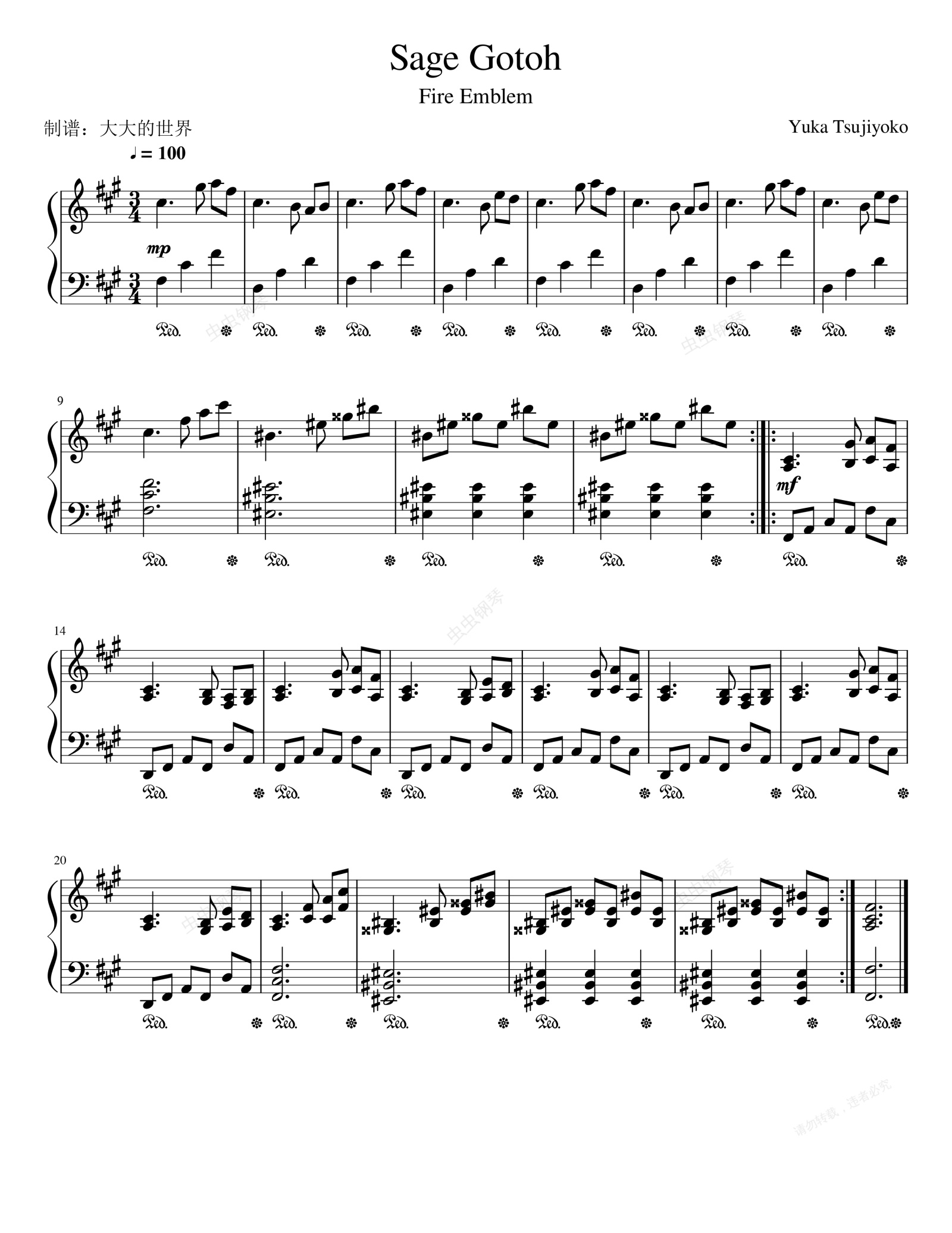 钢琴谱:《Sage Gotoh》(火焰之纹章:暗黑龙与光之剑背景音乐)