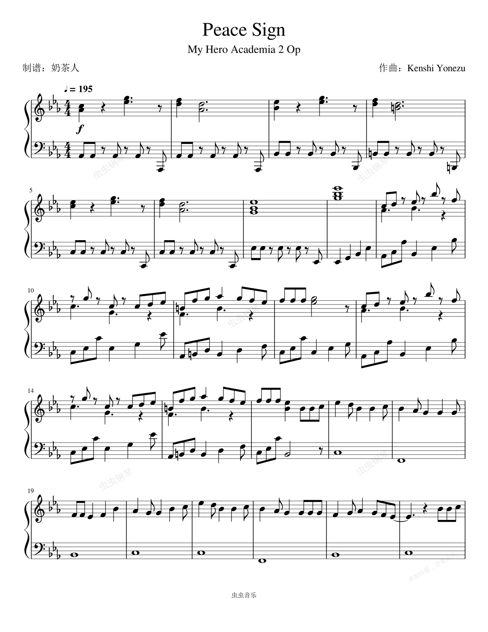 钢琴谱:《Peace Sign》(我的英雄学院第二季主题曲)
