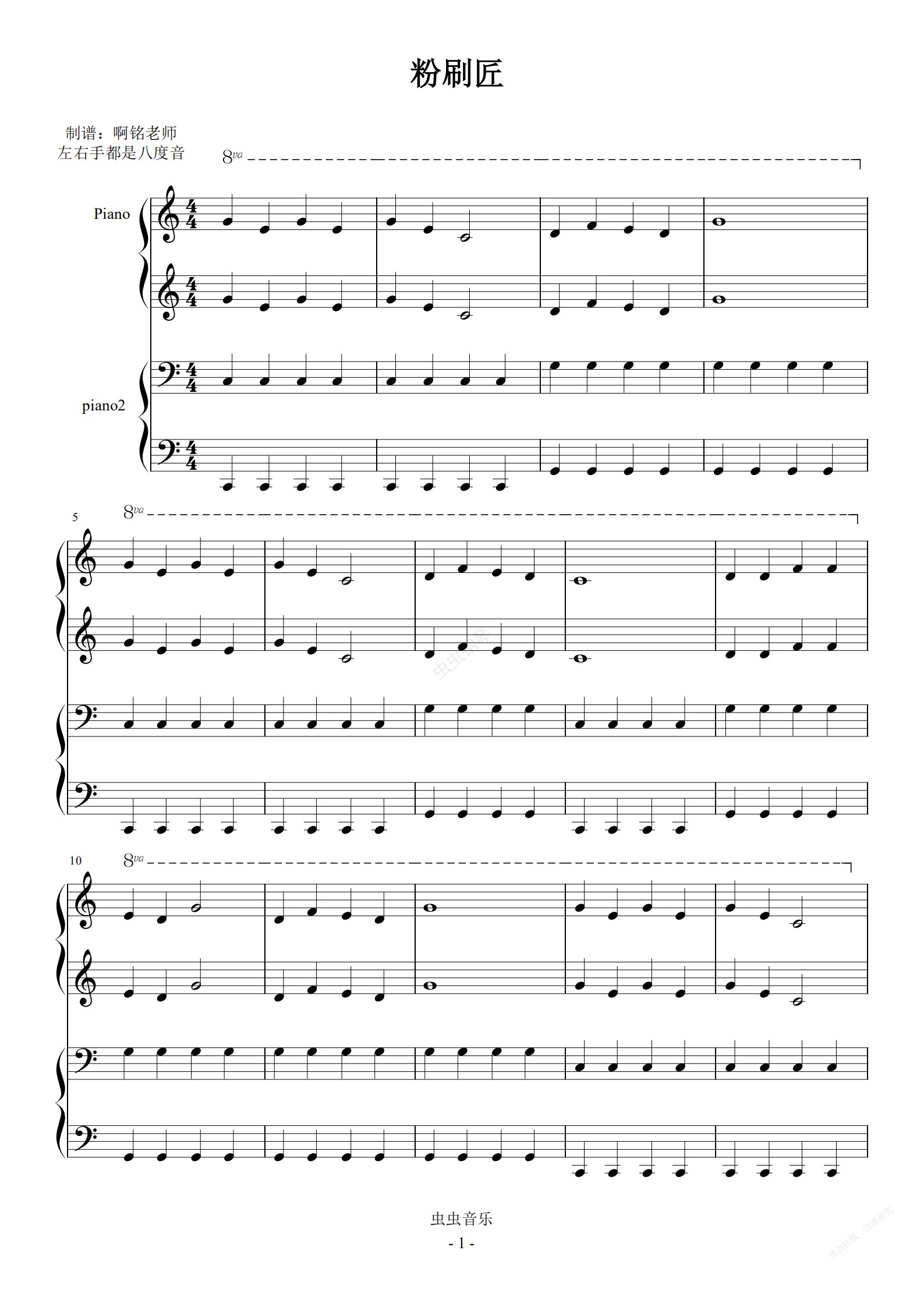 钢琴谱:粉刷匠 四手联弹 小汤2难度