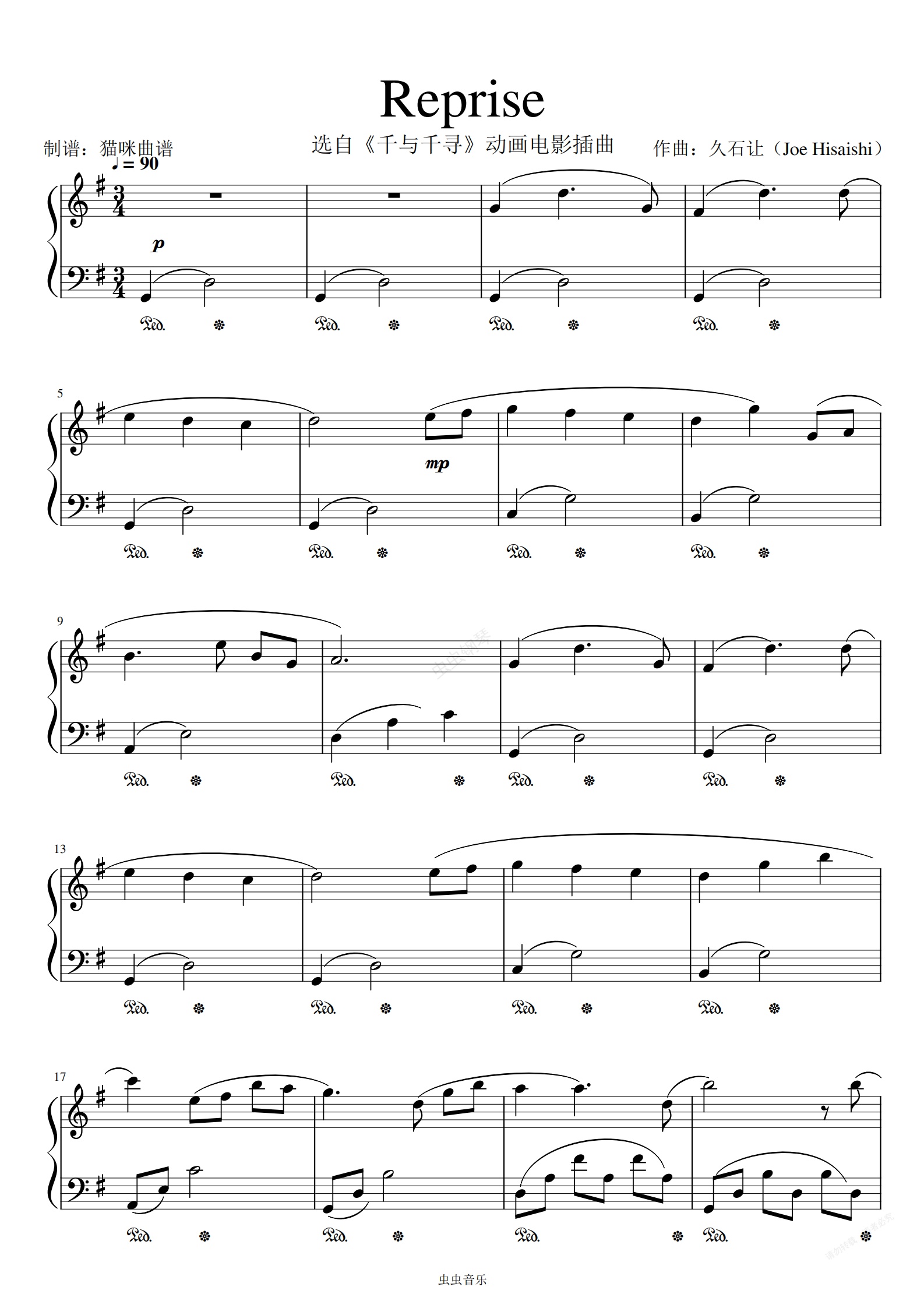 钢琴谱:《Reprise》久石让(选自《千与千寻》动画电影插曲)