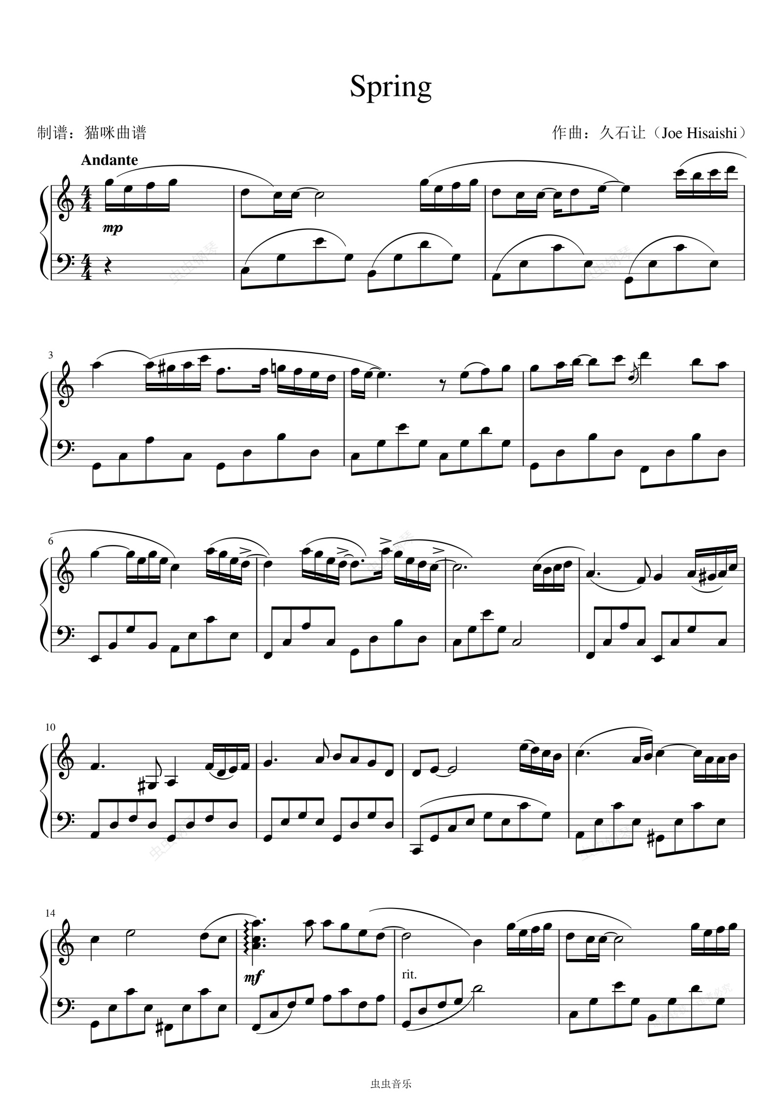 钢琴谱:《Spring》C调-久石让(Joe Hisaishi)