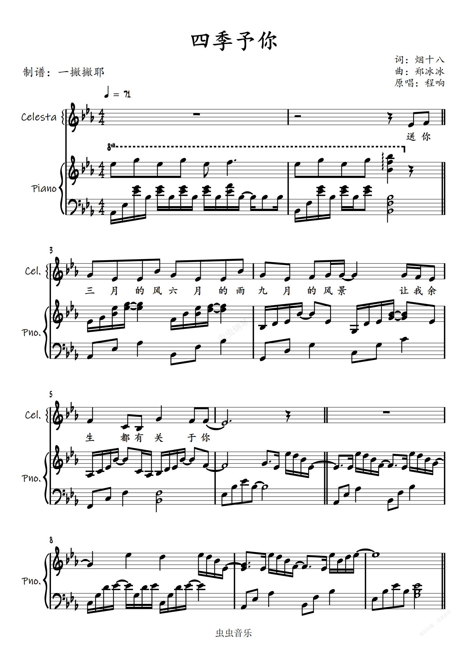 钢琴谱:四季予你【弹唱谱】程响「一撇撇耶」
