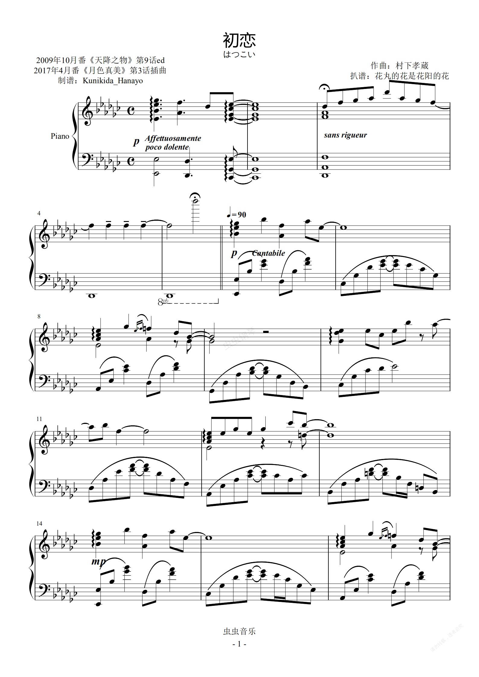 本谱是基于被用作《月色真美》第3话插曲的版本(即东山奈央版)编配而来。降e小调,速度较其他版本慢。