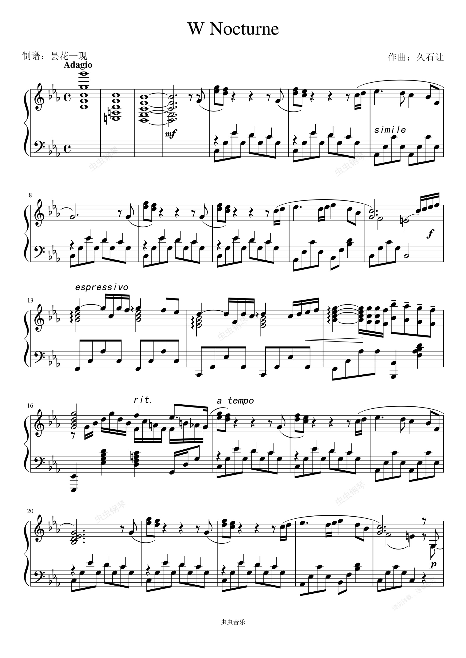 钢琴谱:W Nocturne(夜曲)