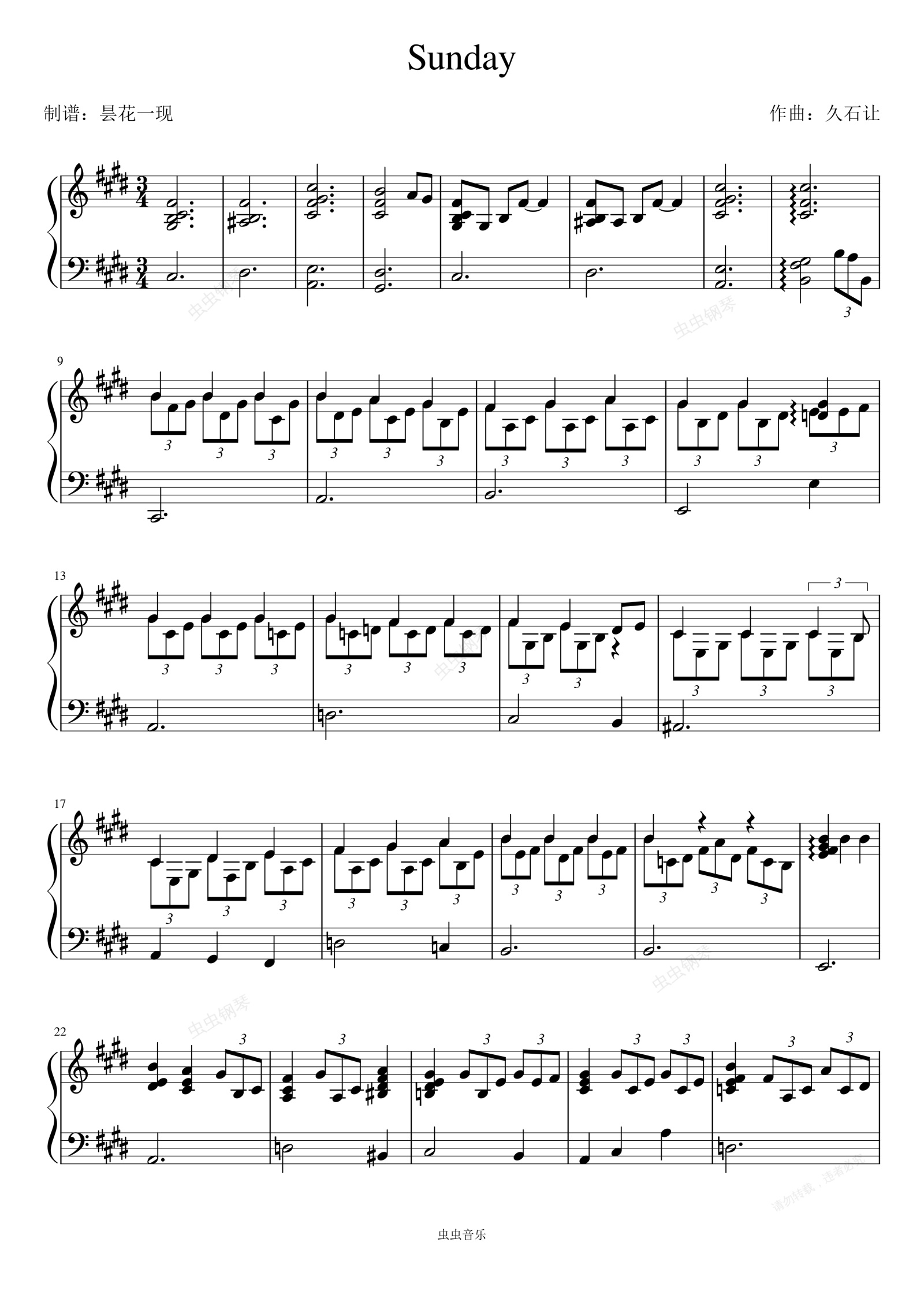 钢琴谱:Sunday