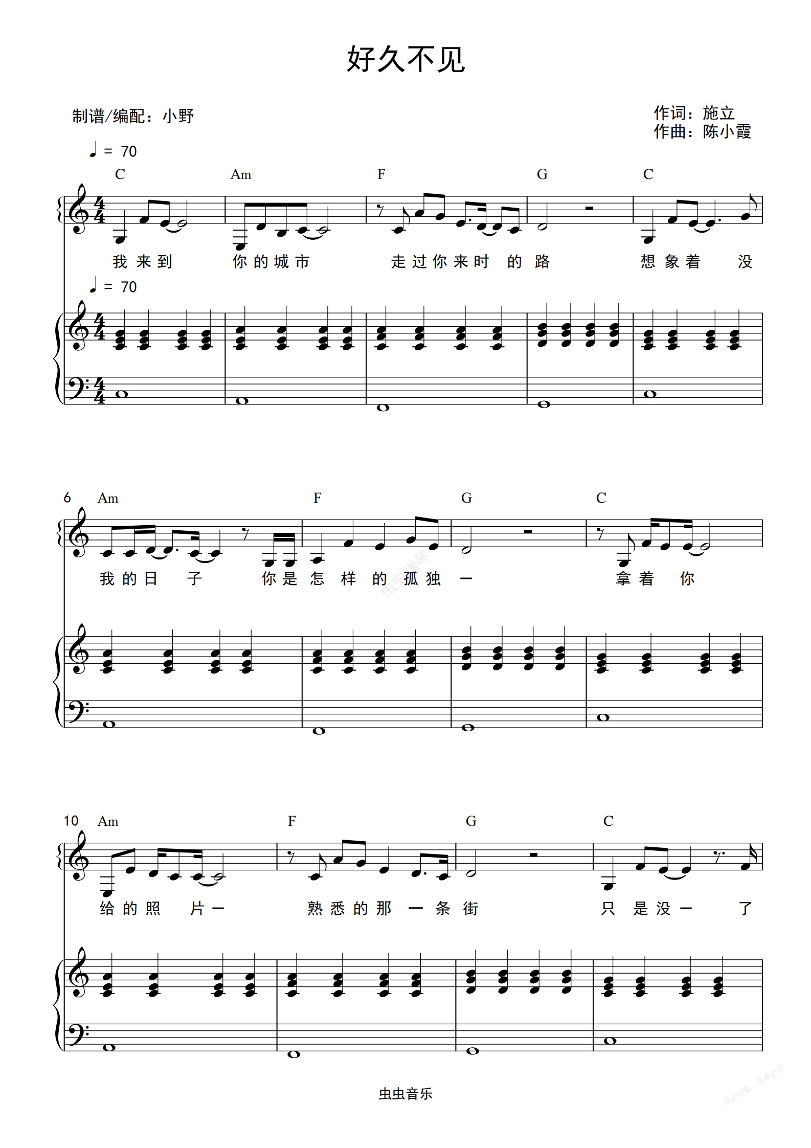 钢琴谱:好久不见(和弦弹唱版)