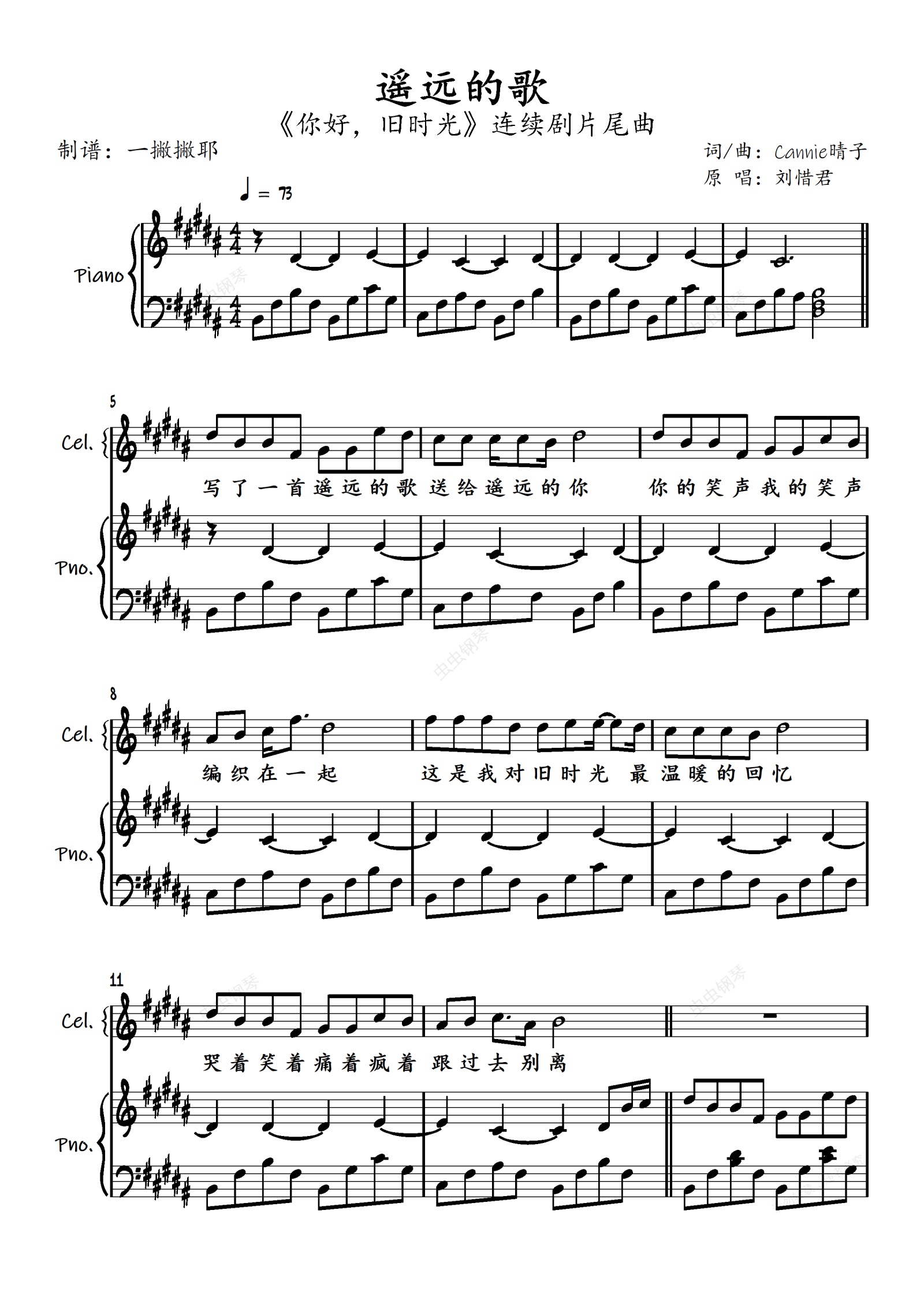 钢琴谱:遥远的歌【弹唱谱】刘惜君《你好,旧时光》「一撇撇耶」