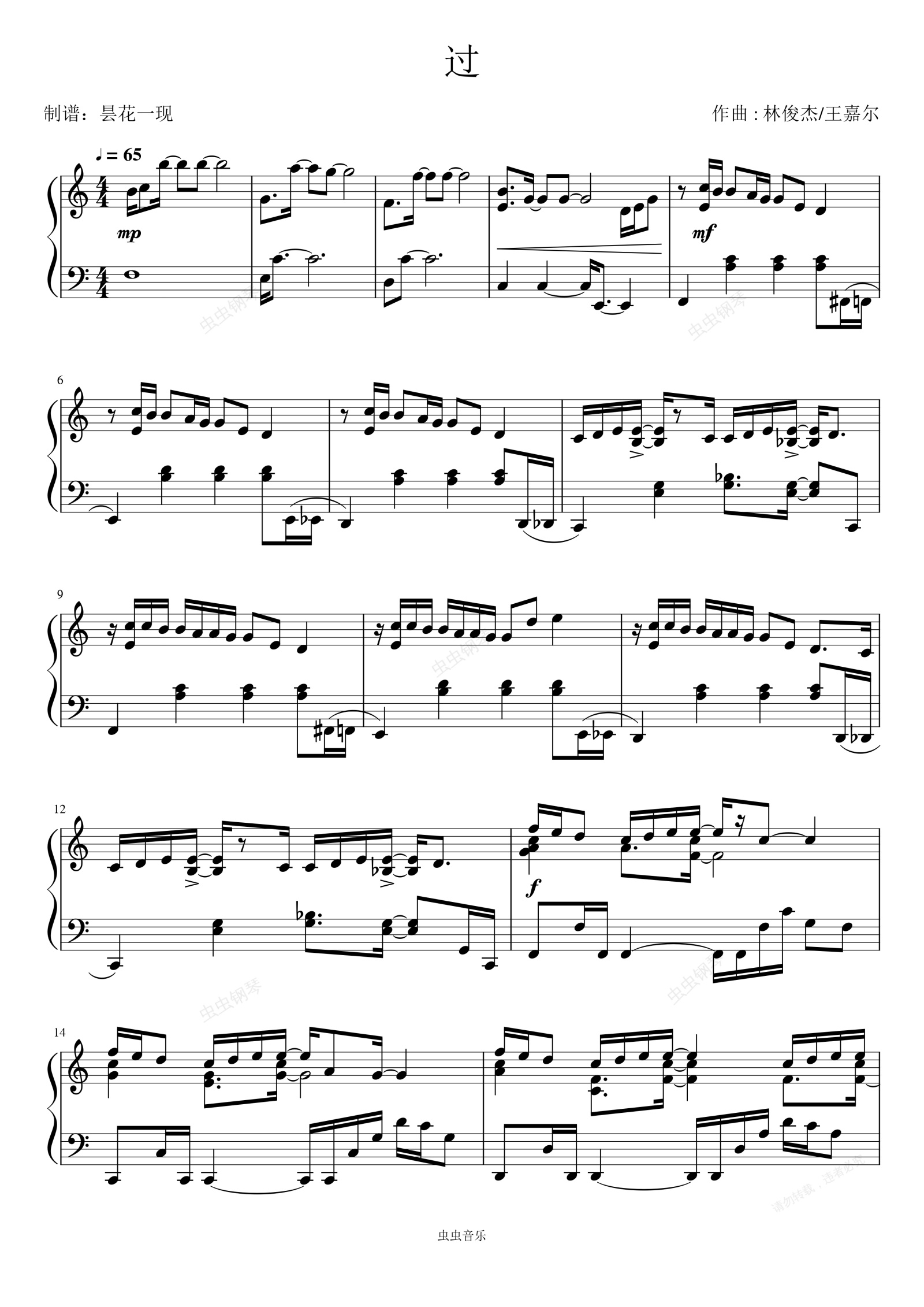 钢琴谱:过(林俊杰 王嘉尔)