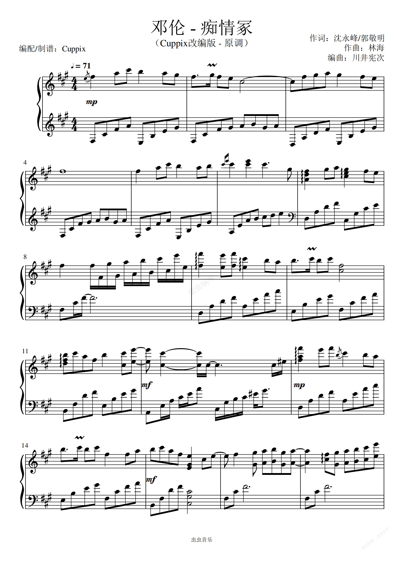 钢琴谱:《痴情冢》Cuppix改编-原调-唯美高度还原(邓伦 晴雅集 片尾曲)