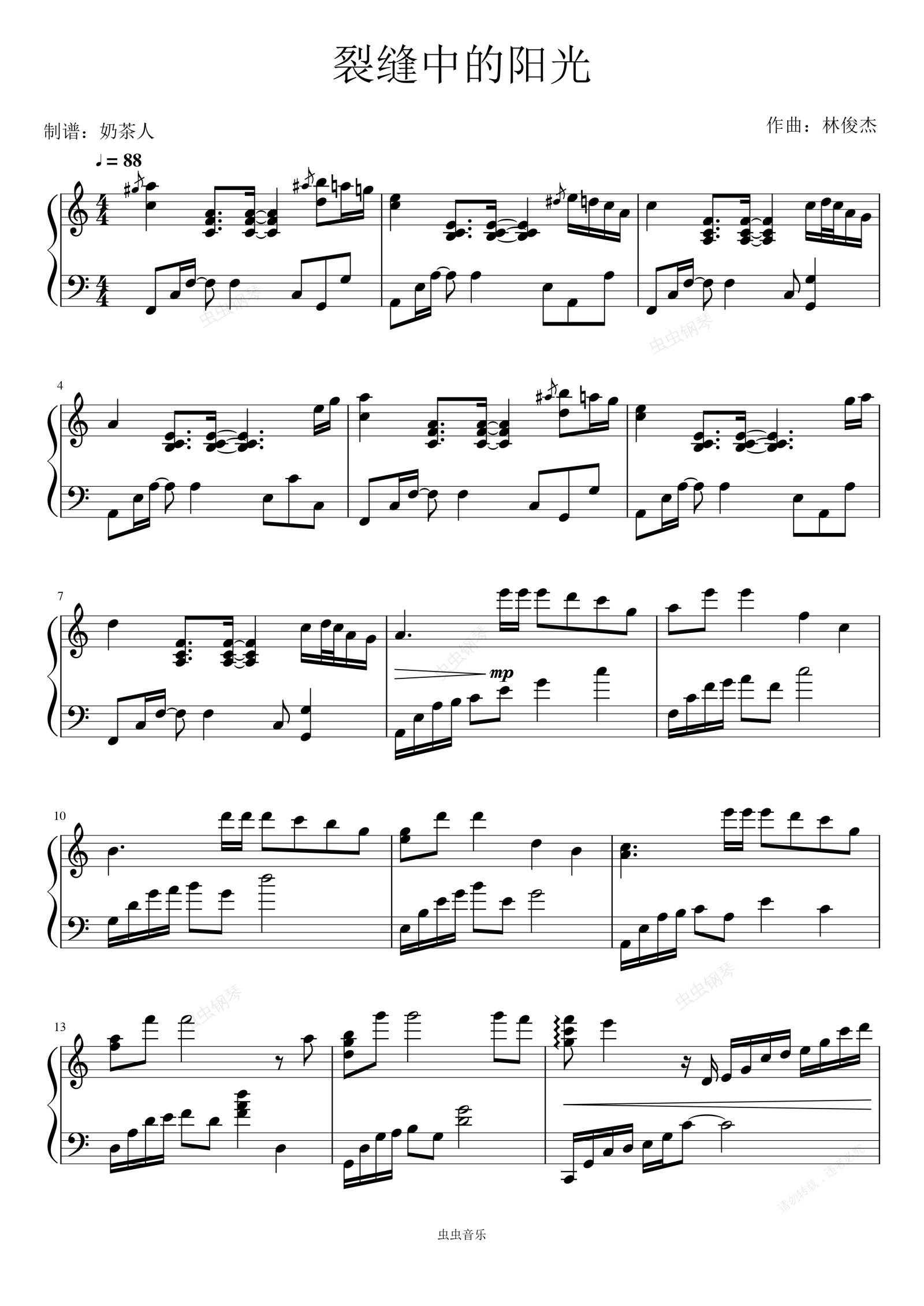 钢琴谱:《裂缝中的阳光》 林俊杰 完美独奏