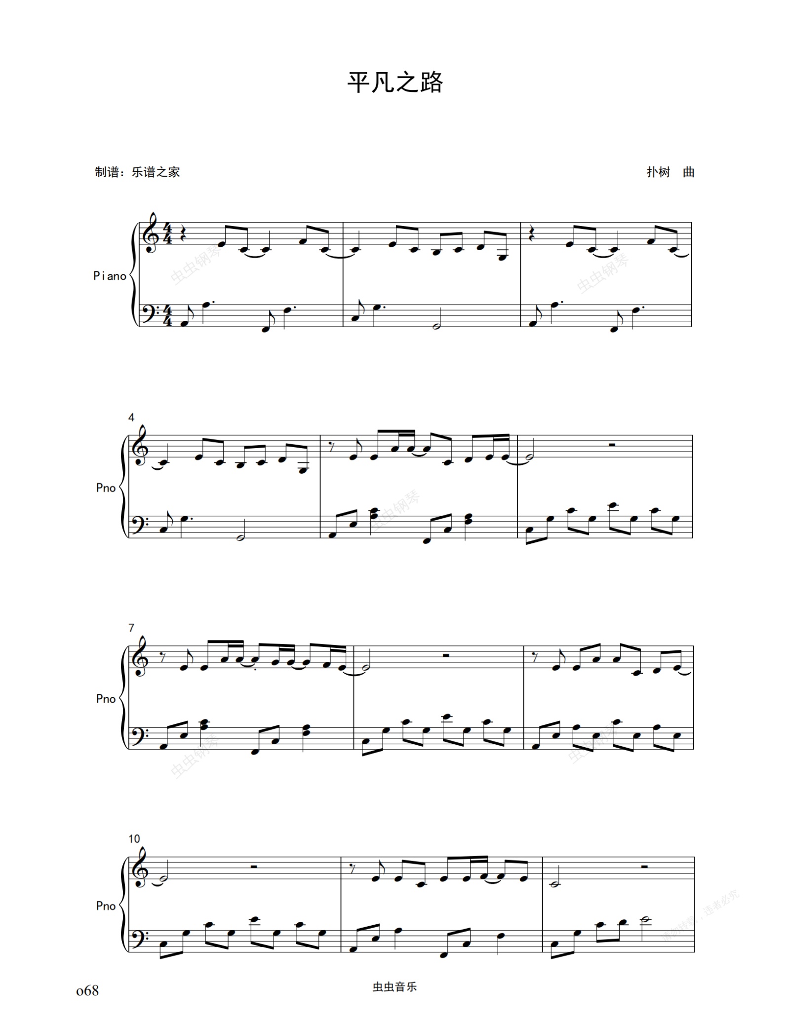 钢琴谱:C大调 平凡之路 朴树作品 高清钢琴谱 特别好听 简单易学 送示范音频