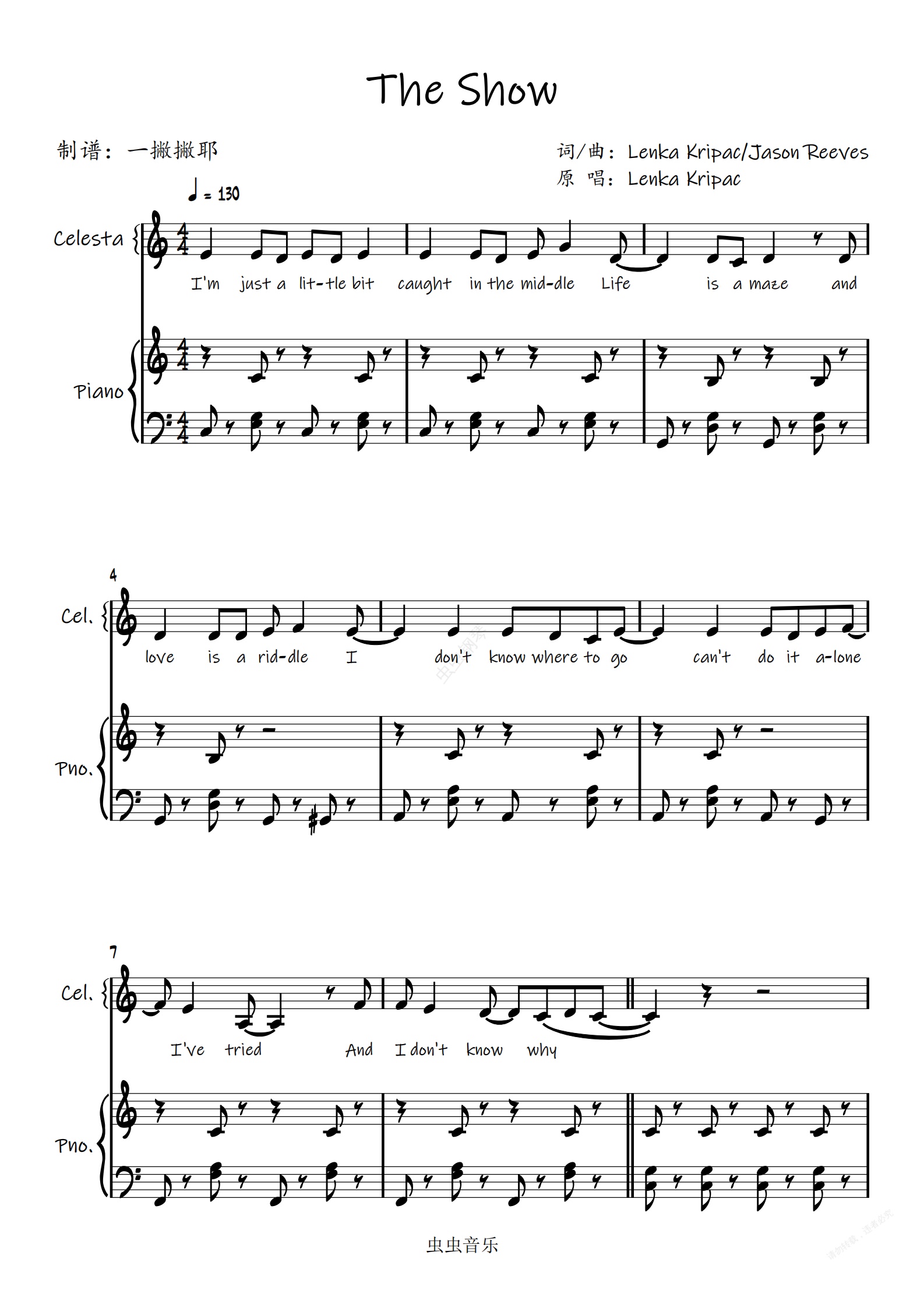 钢琴谱:The Show【弹唱谱】Lenka「一撇撇耶」
