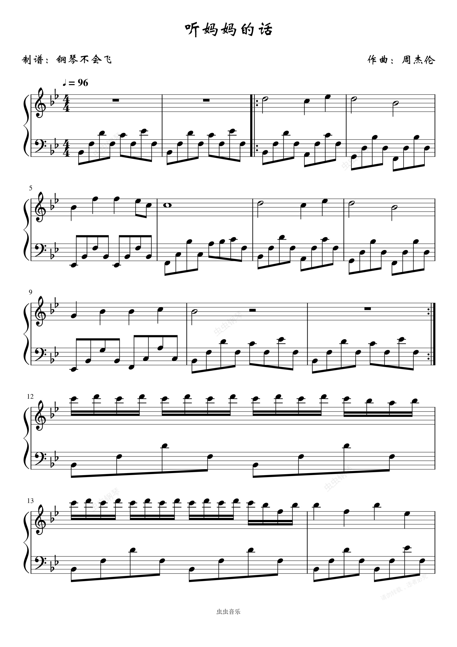 钢琴谱:听妈妈的话