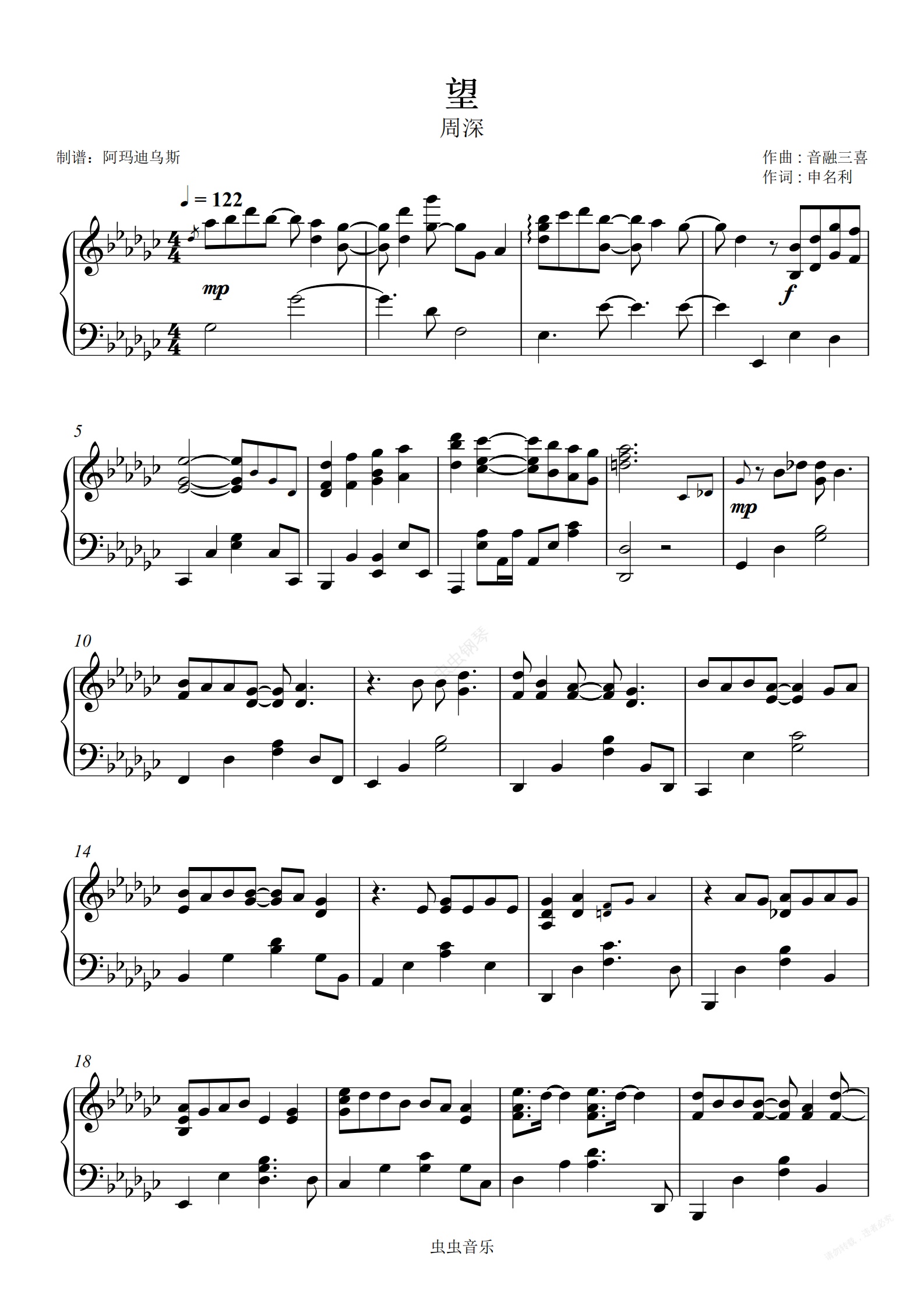 钢琴谱:周深 < 望 > 原调高还原完整版本