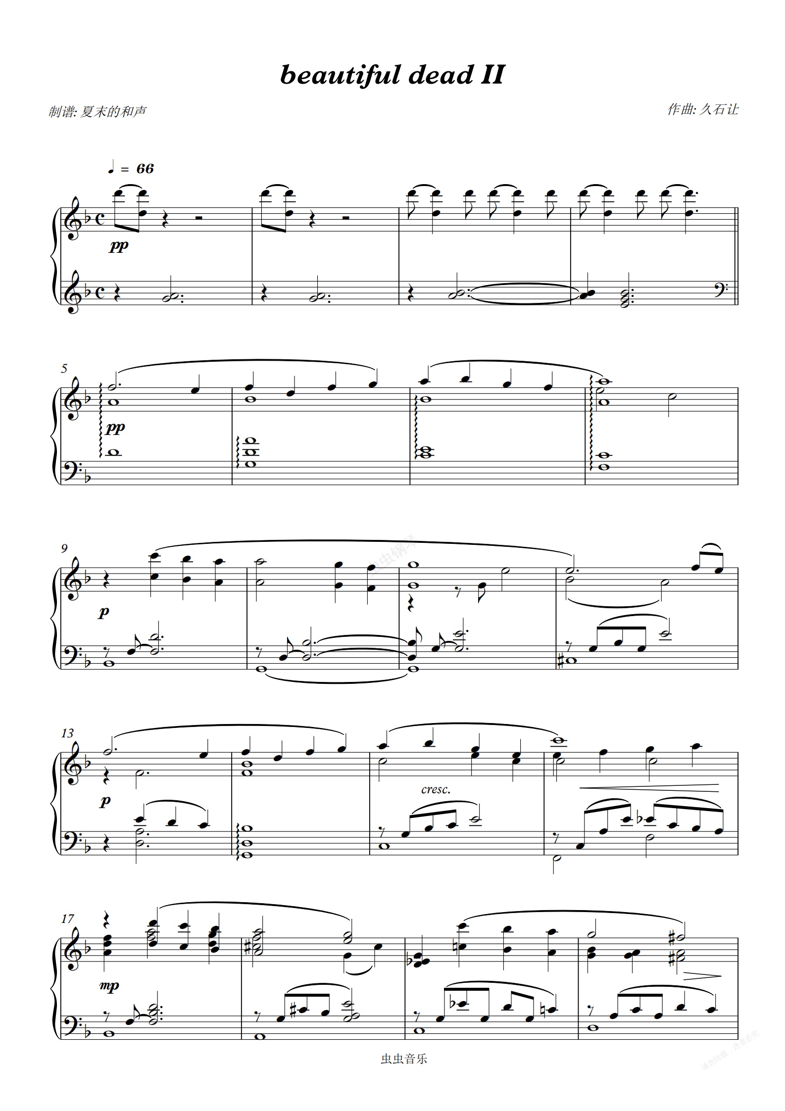钢琴谱:久石让 - 「入殓师」插曲 - beautiful dead II