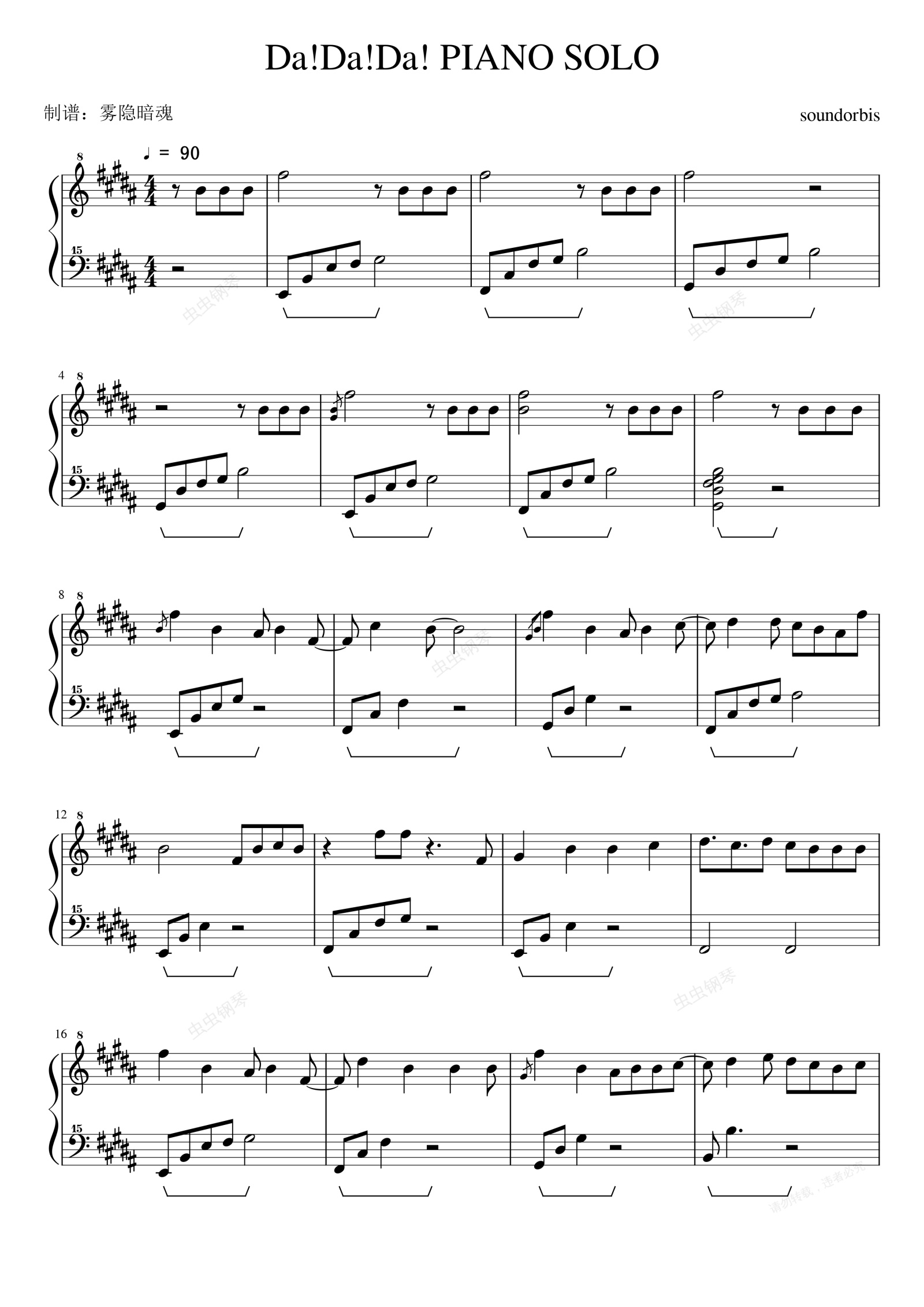钢琴谱:Da!Da!Da! PIANO SOLO (我在七年后等着你 配乐) - soundorbis