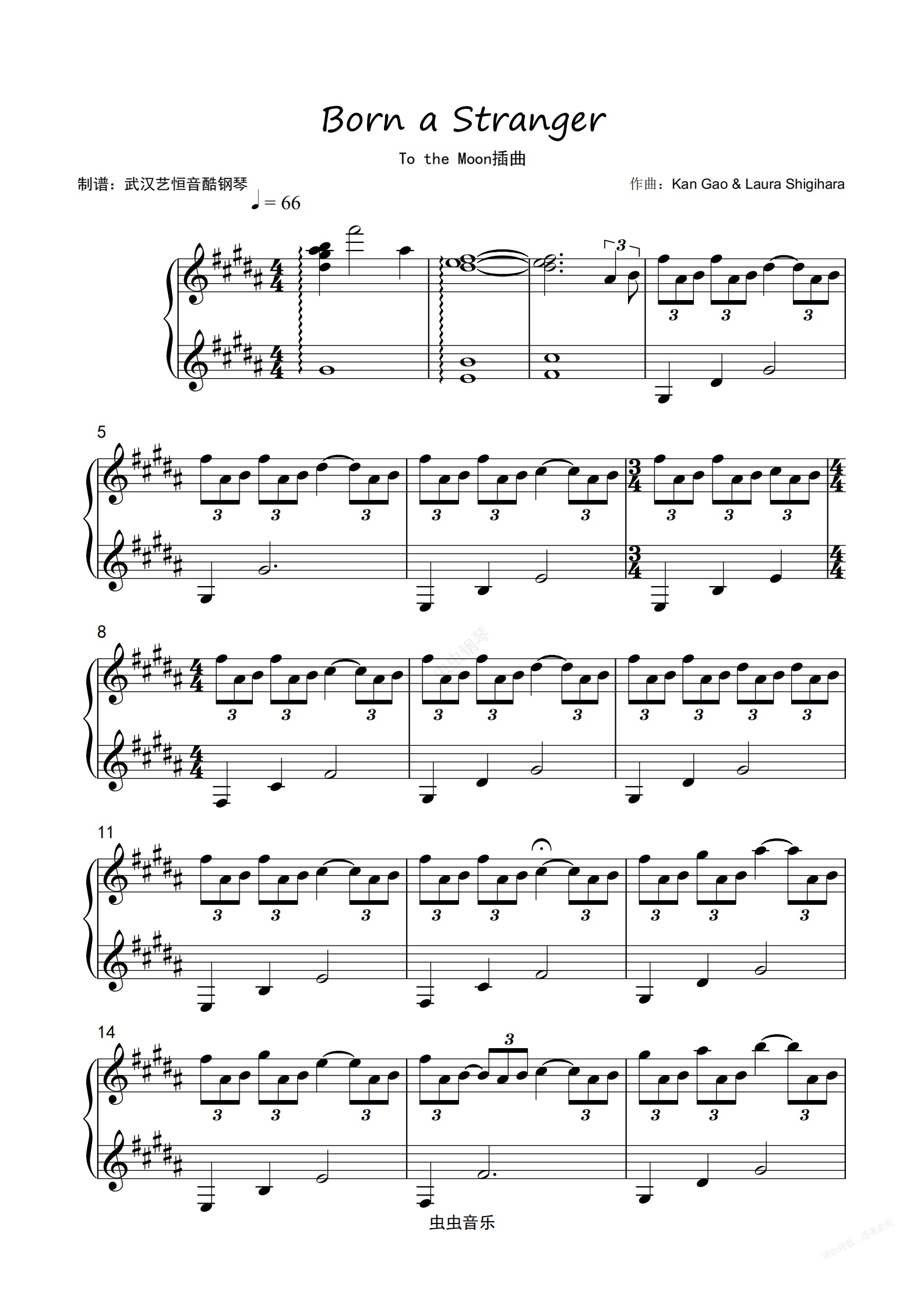钢琴谱:《Born a Stranger》(To the moon插曲)