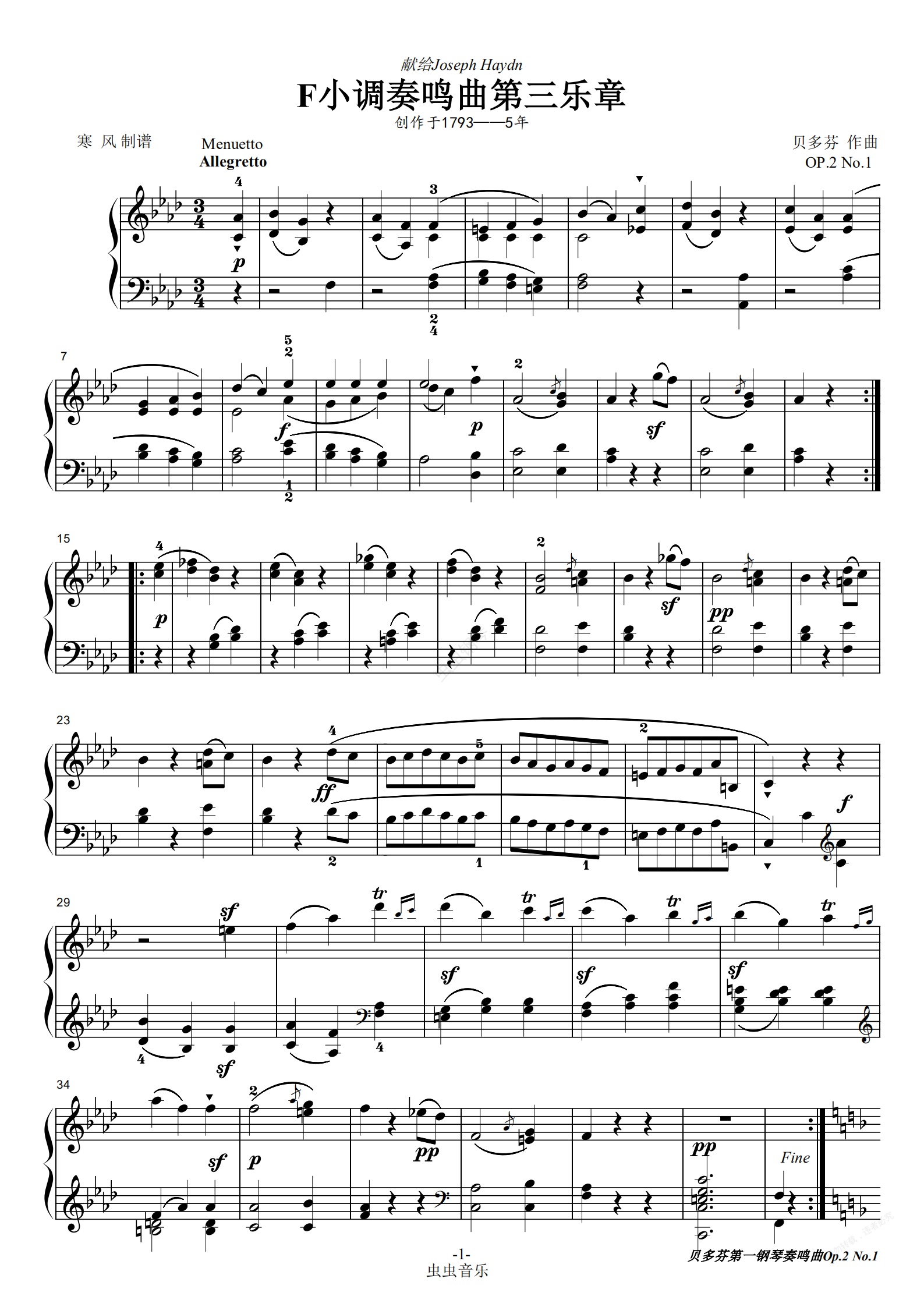钢琴谱:贝多芬-Piano Sonata No.1, Op.2 No.1第三乐章