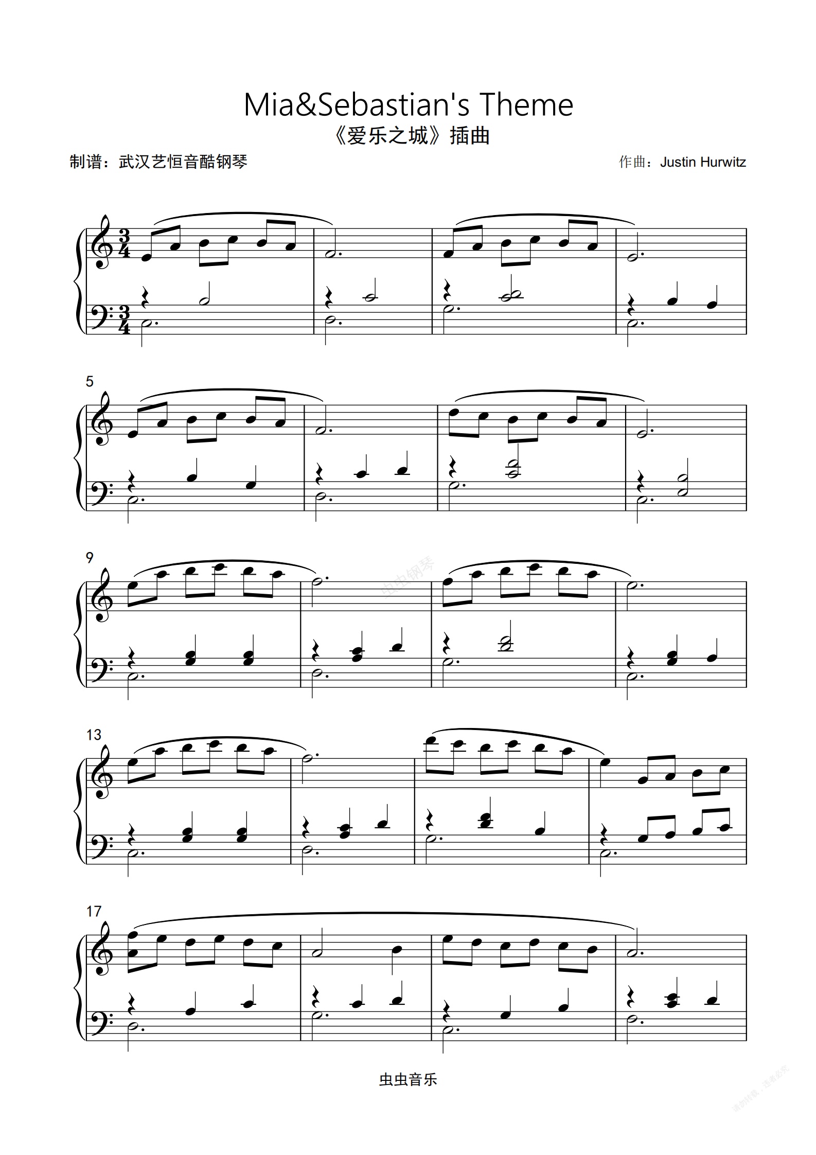 钢琴谱:《Mia&Sebastian's Theme》C调简易版(爱乐之城)插曲