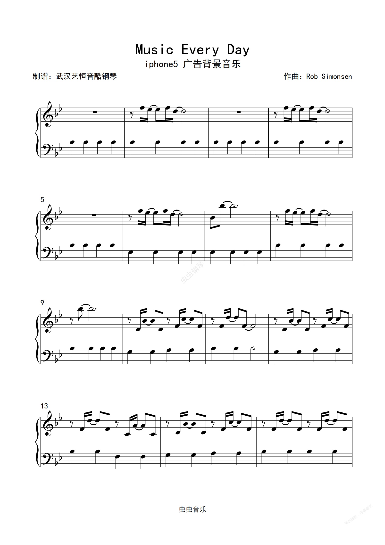 钢琴谱:《Music Every Day》(Iphone5广告经典配乐)