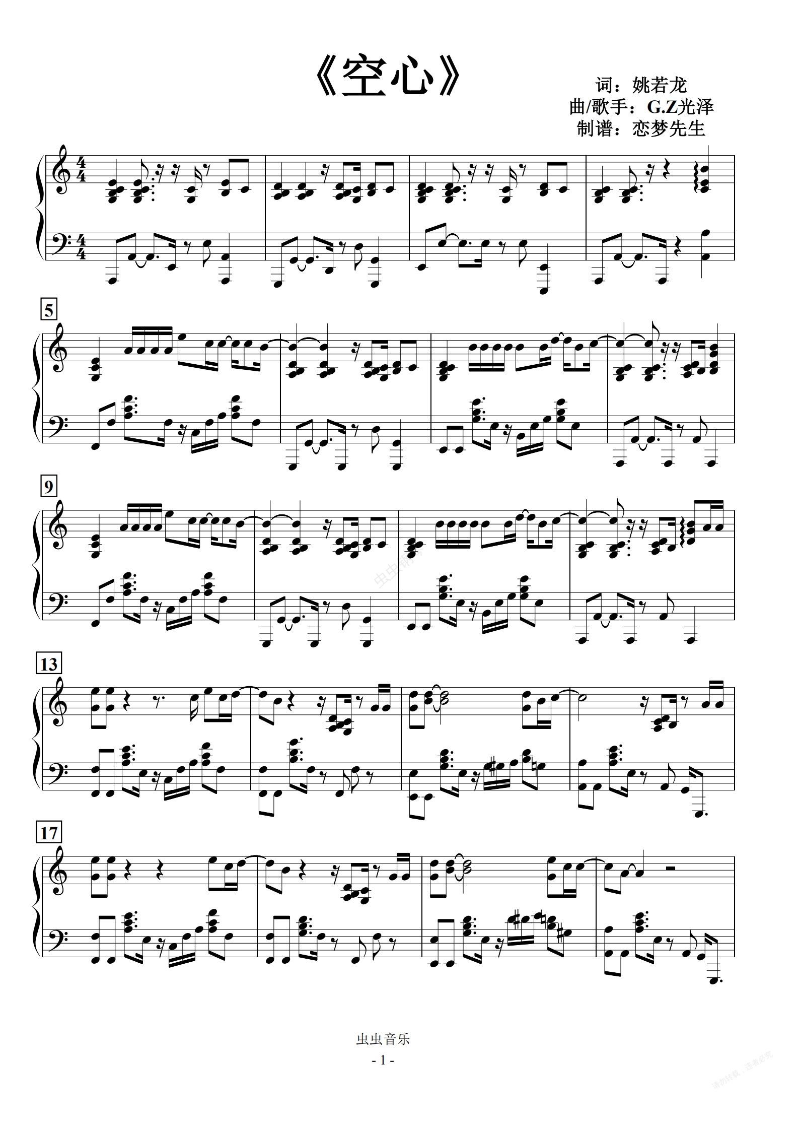 钢琴谱:《空心》