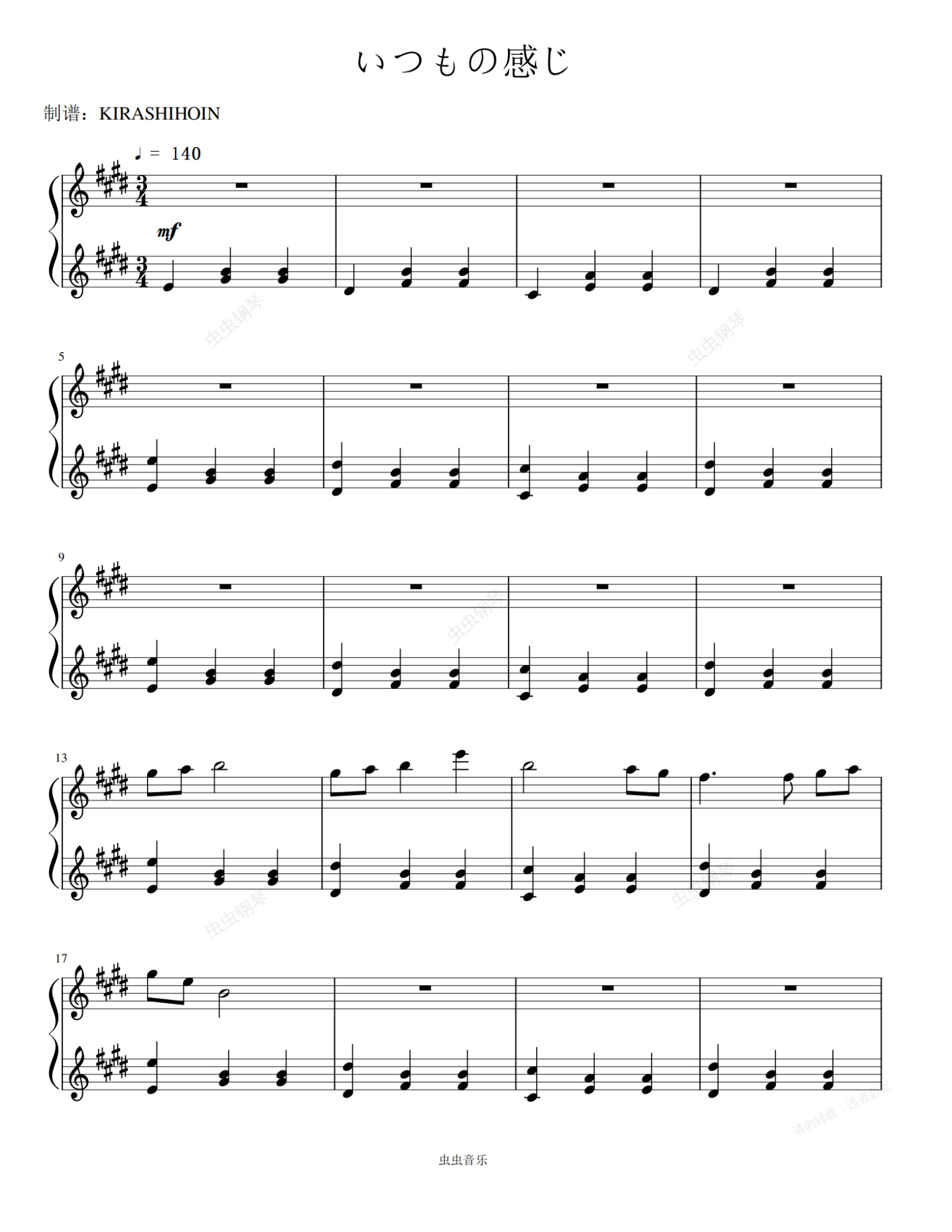 钢琴谱:いつもの感じ(《幸运星》插曲)