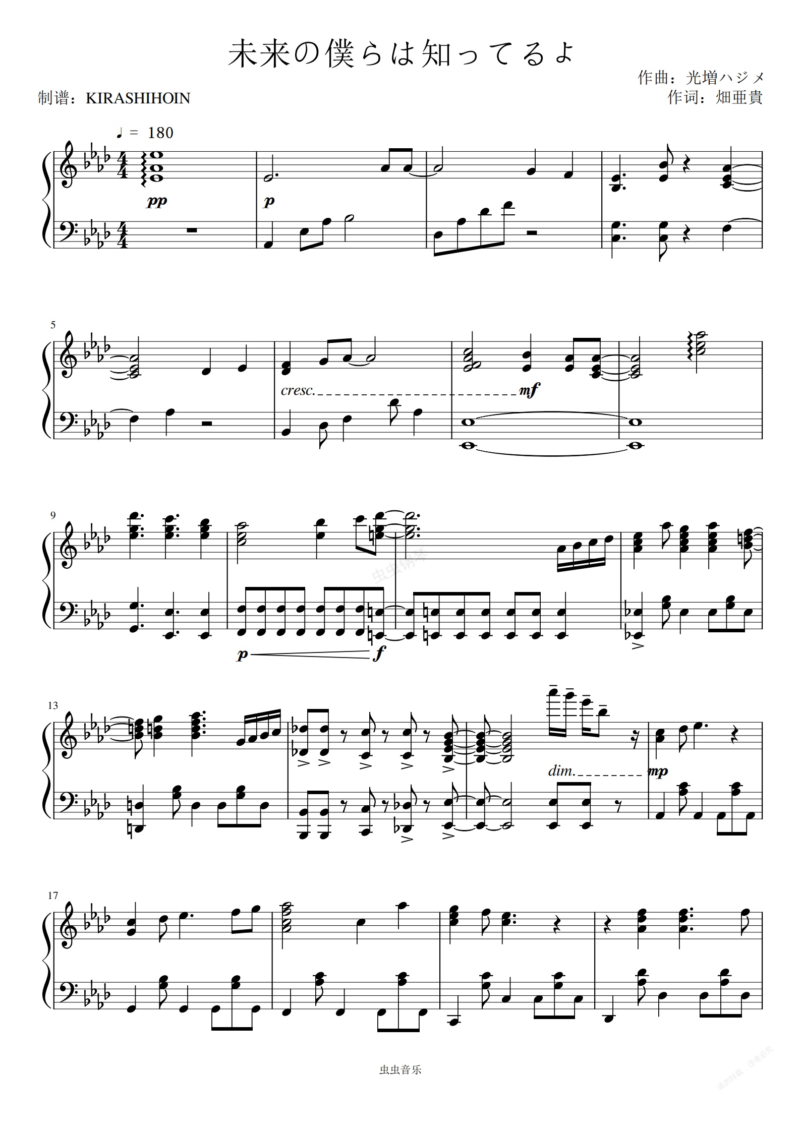 钢琴谱:未来の僕らは知ってるよ(《LoveLive!Sunshine!!》OP)