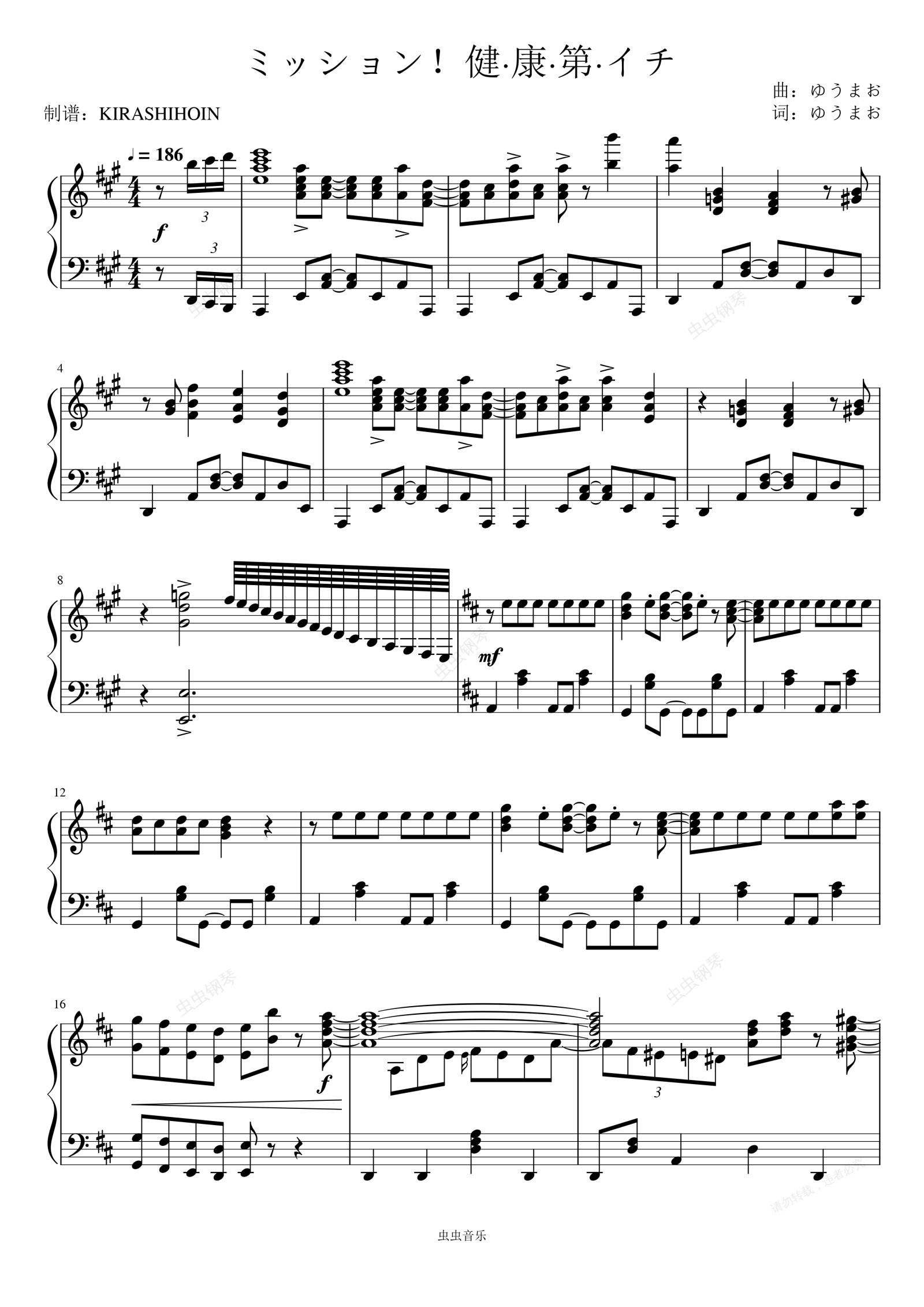 钢琴谱:ミッション!健·康·第·イチ(《工作细胞》OP)