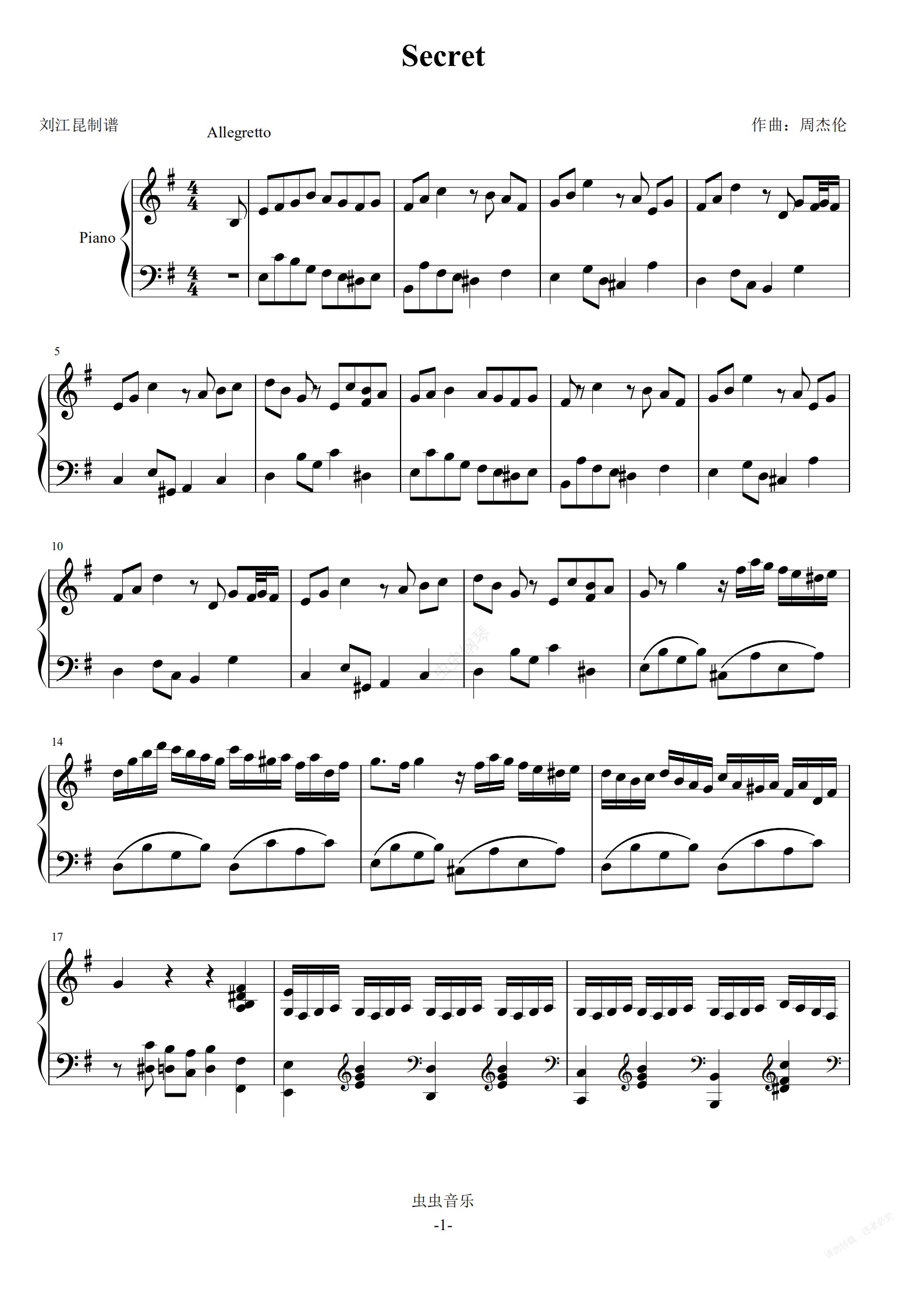 钢琴谱:Secret(选自电影《不能说的秘密》)