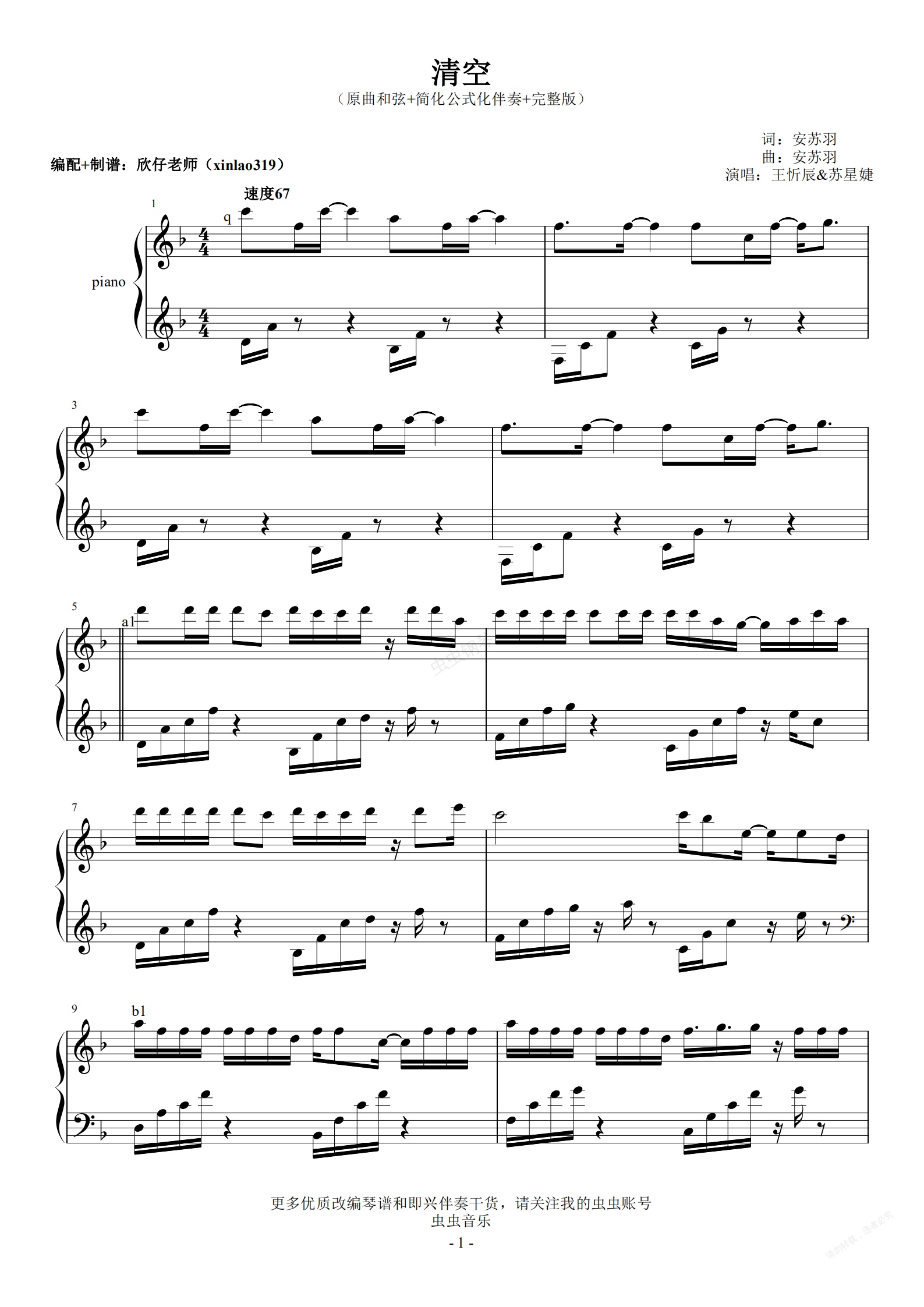钢琴谱:F调-《清空》(原曲和弦+公式化伴奏+完整版)