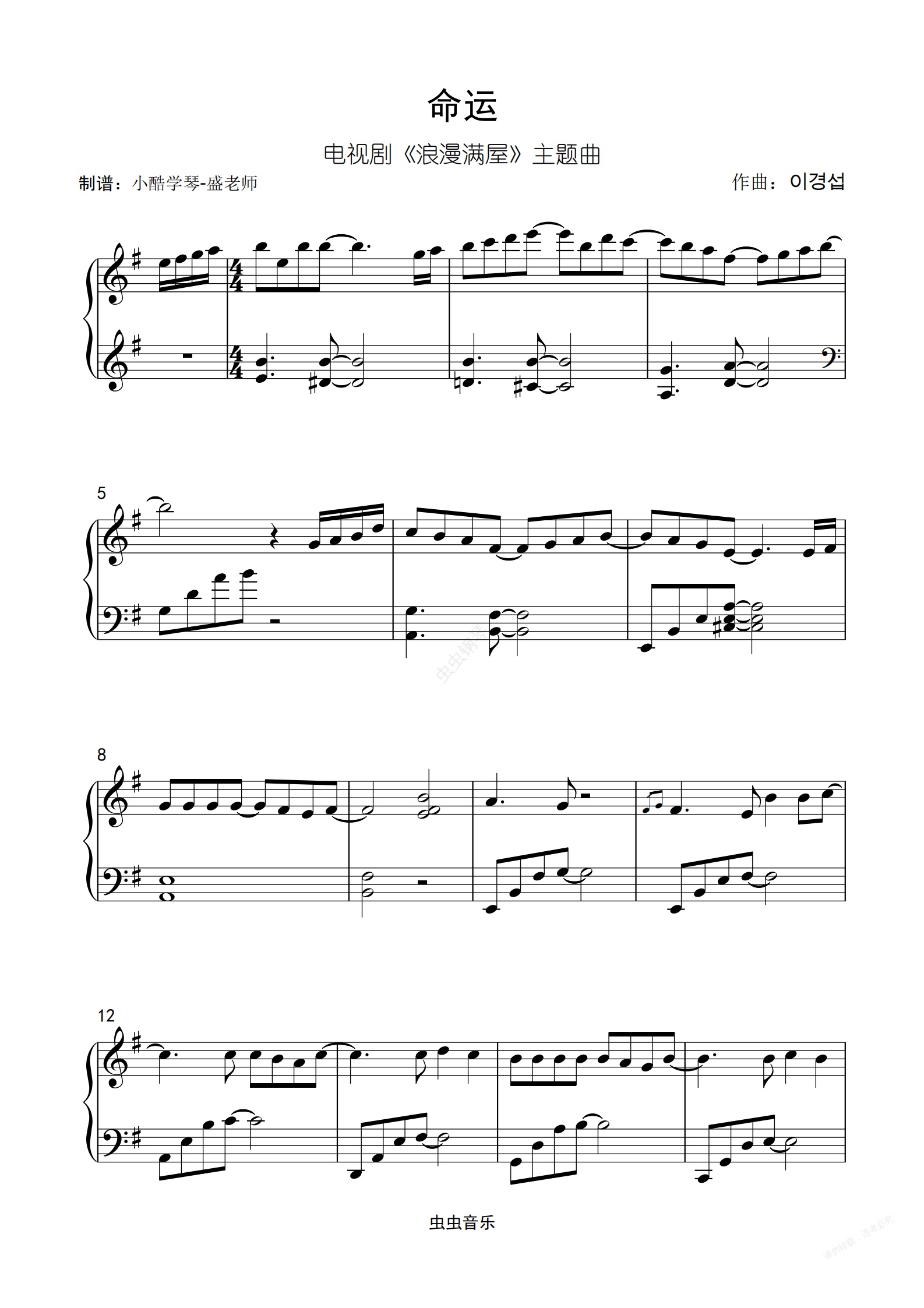 钢琴谱:《命运》浪漫满屋主题曲——完美还原版