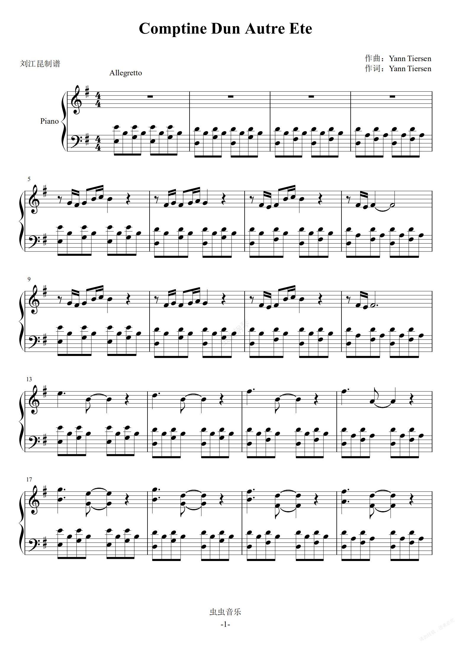 钢琴谱:Comptine dun autre ete(《天使爱美丽》主题曲