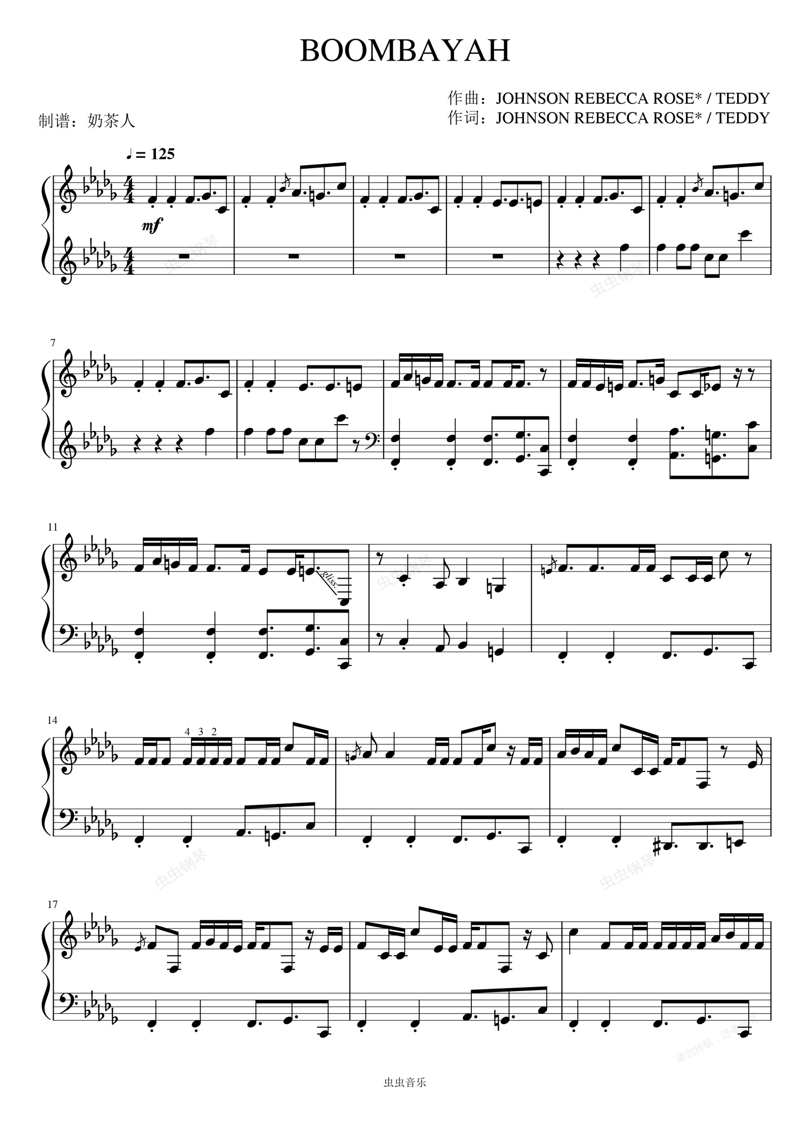 钢琴谱:《BOOMBAYAH》很有舞蹈节奏