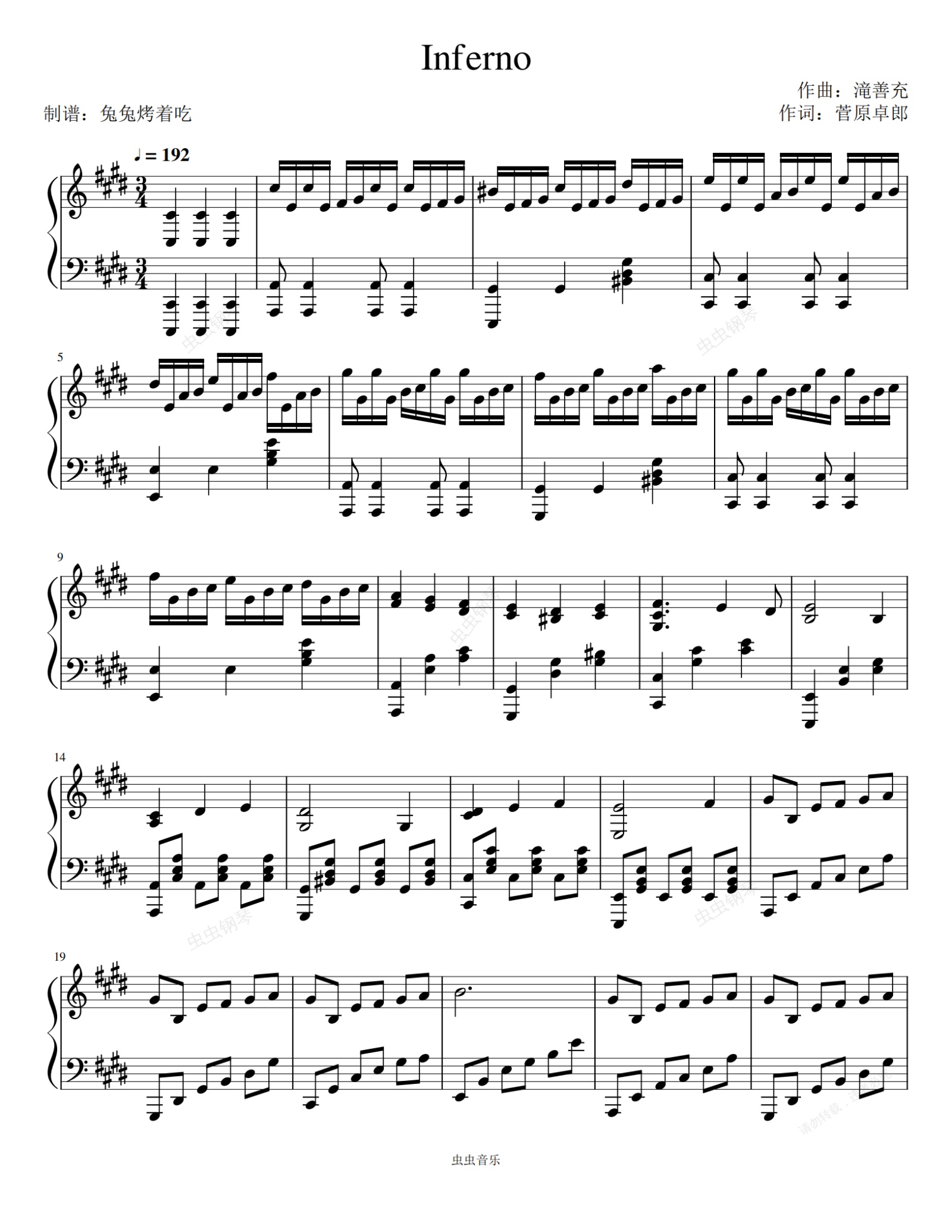 钢琴谱:《Inferno》剑风传奇主题曲 超难劝退版