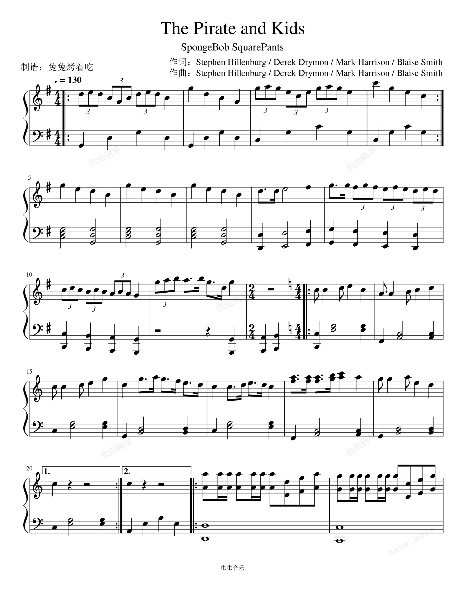 钢琴谱:海绵宝宝主题曲(船长那首)《The Pirate and Kids》
