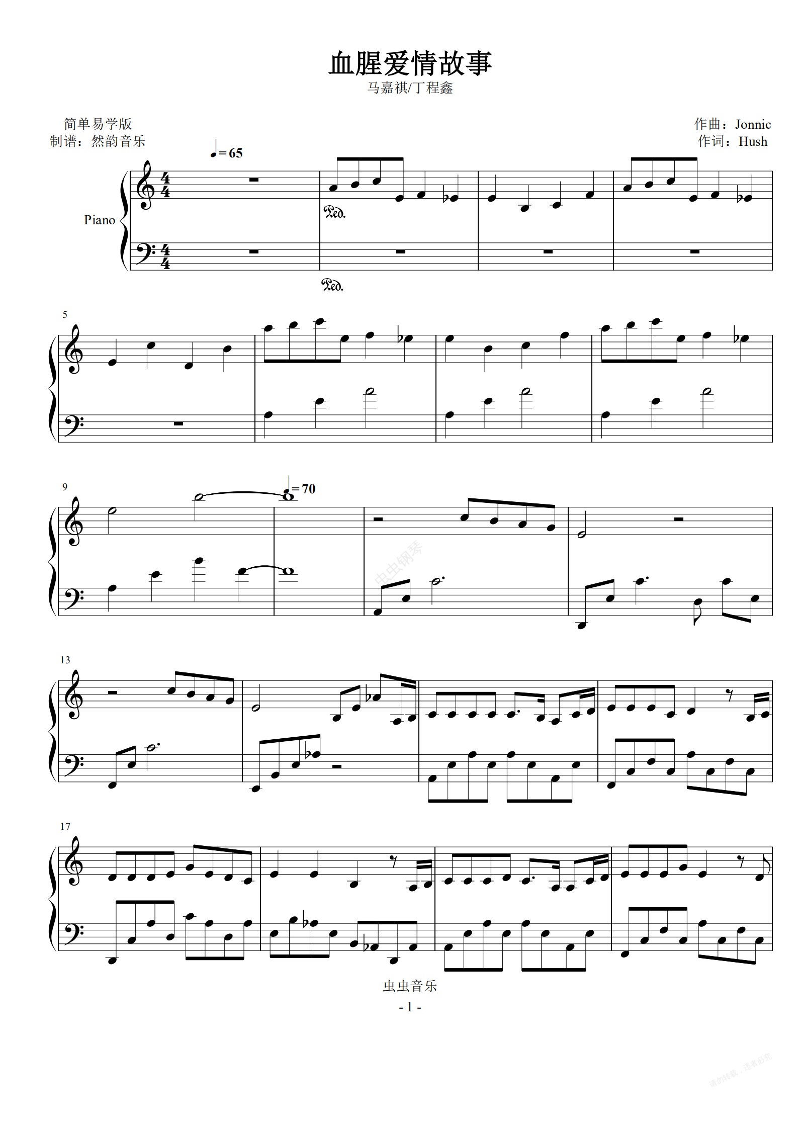 钢琴谱:血腥爱情故事-马嘉祺/丁程鑫(C调)TNT时代少年团公演