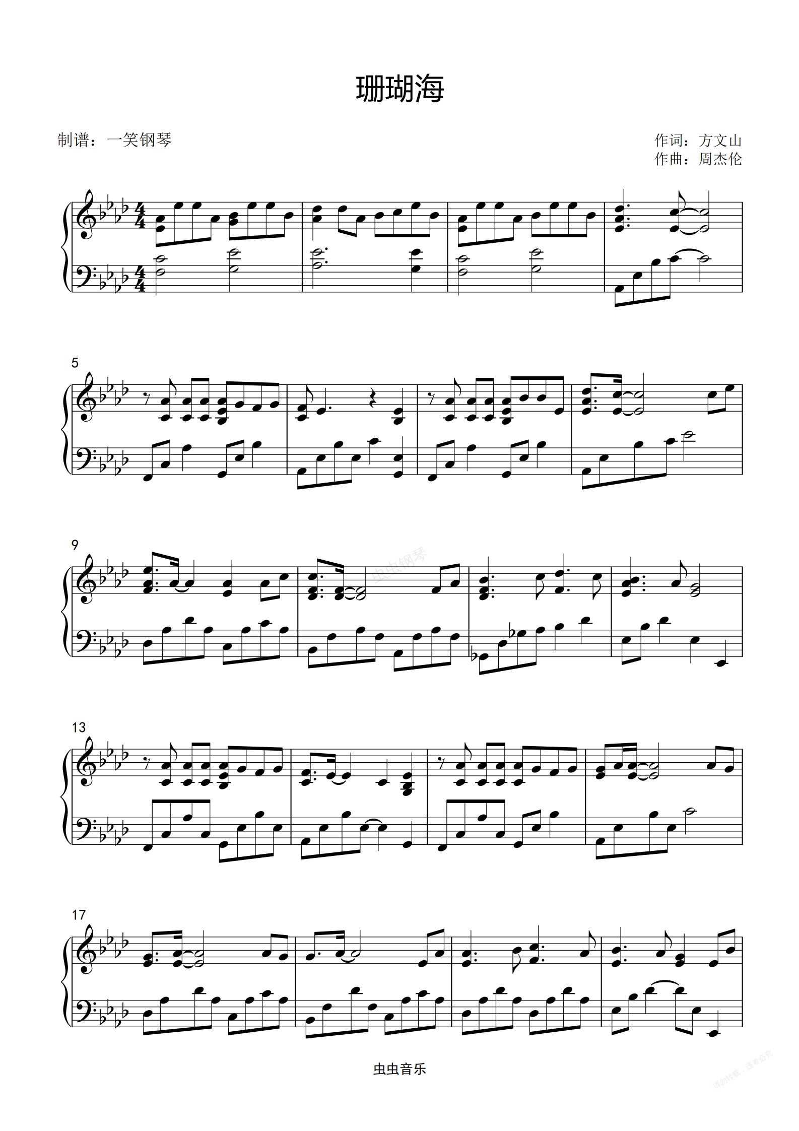 钢琴谱:珊瑚海-周杰伦/Lara梁心颐 【超级好听版】