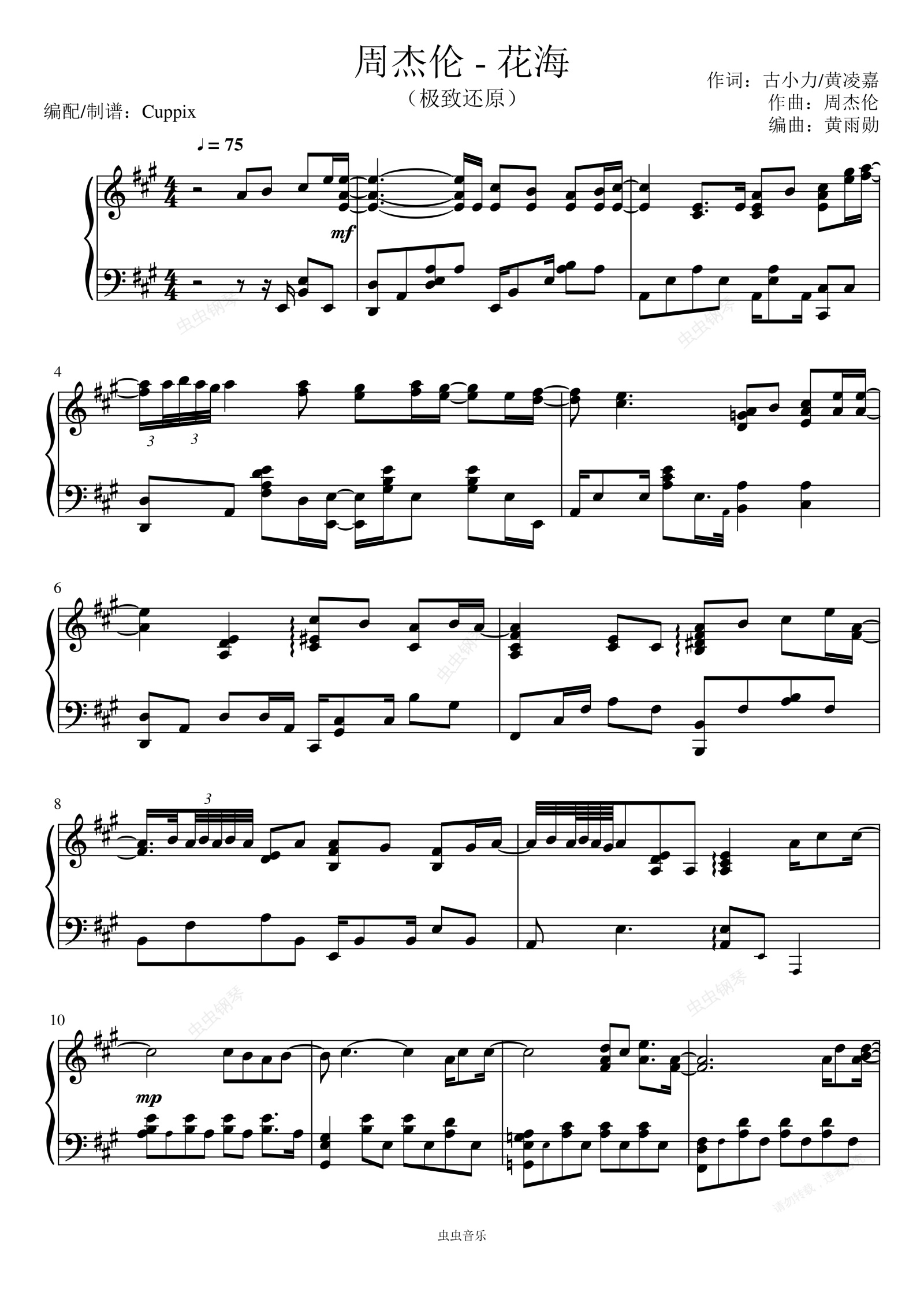 钢琴谱:周杰伦《花海》Cuppix改编-极限还原