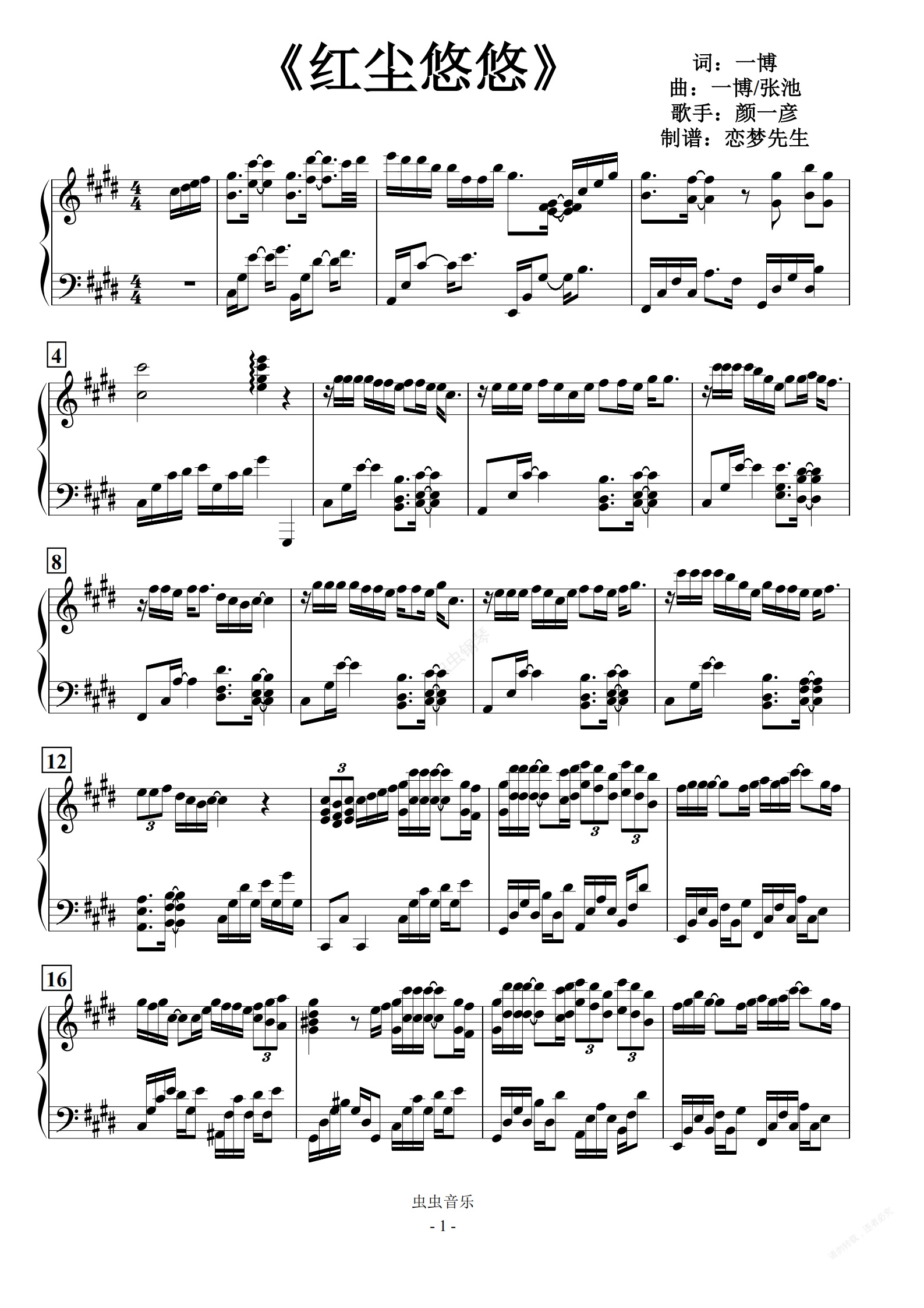 钢琴谱:《红尘悠悠》