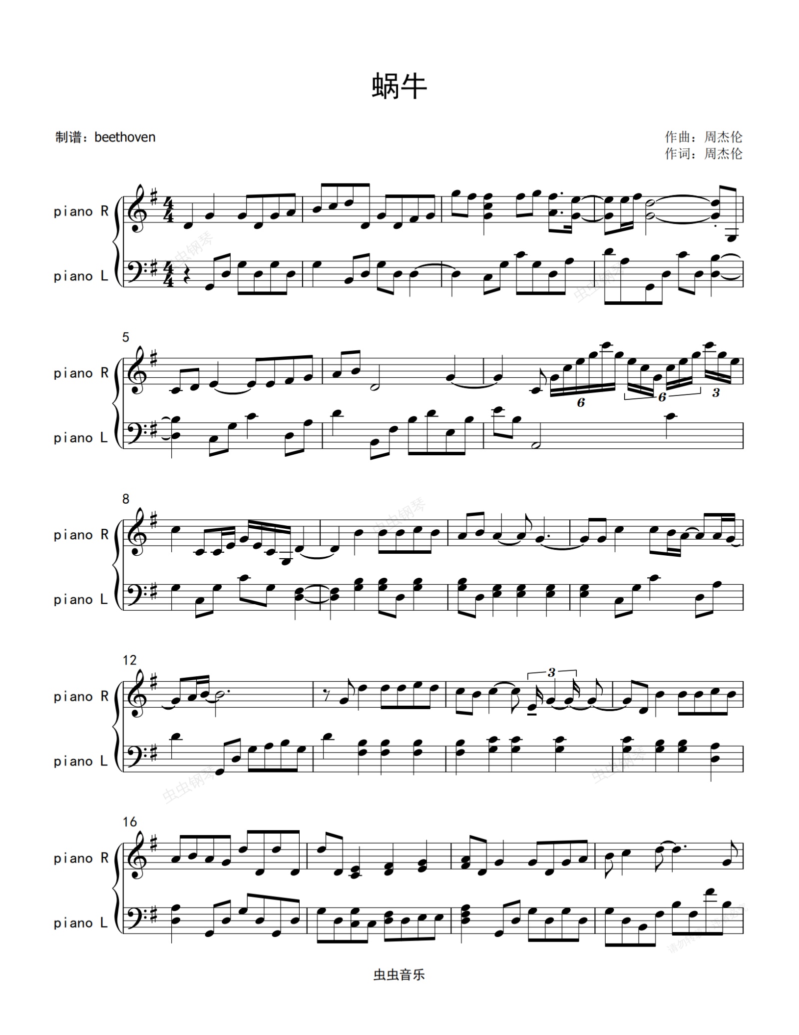 钢琴谱:蜗牛(简单动听)_ 周杰伦