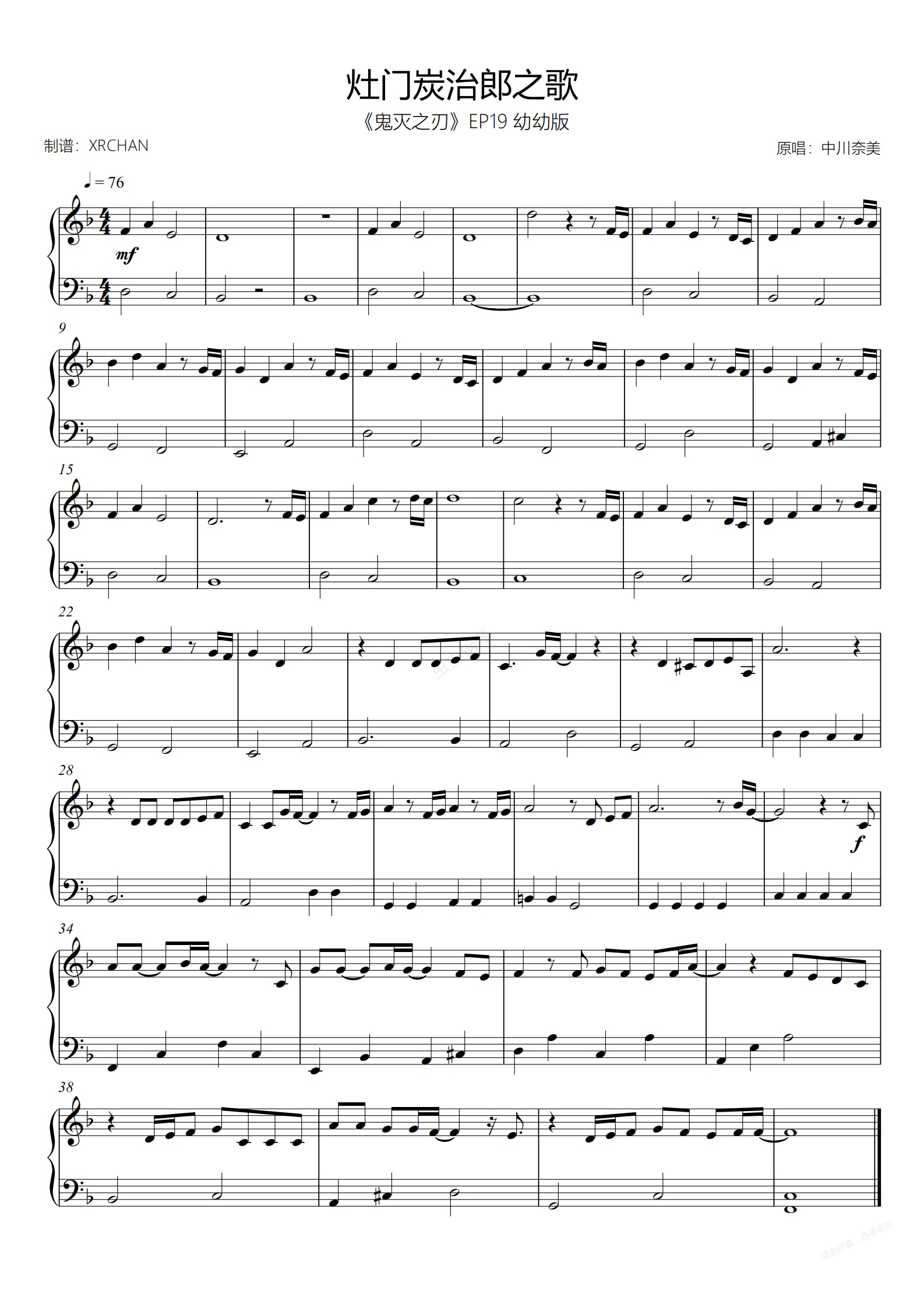 钢琴谱:灶门炭治郎之歌 幼幼版 《鬼灭之刃》EP19