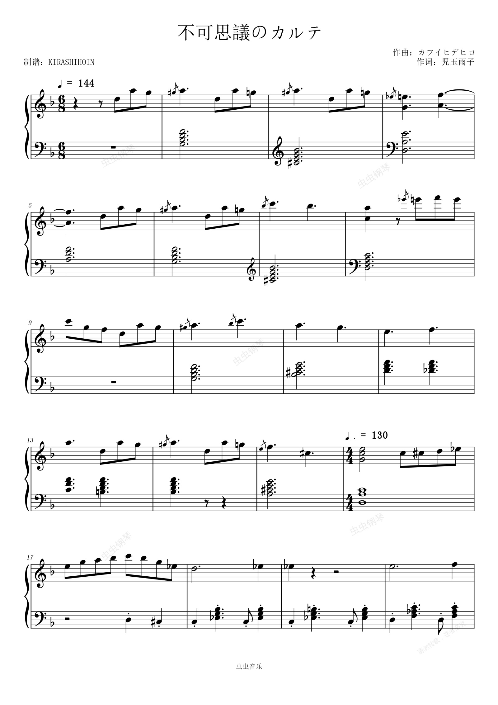 钢琴谱:不可思議のカルテ(《青春期猪头少年不做兔女郎学姐的梦》ED)