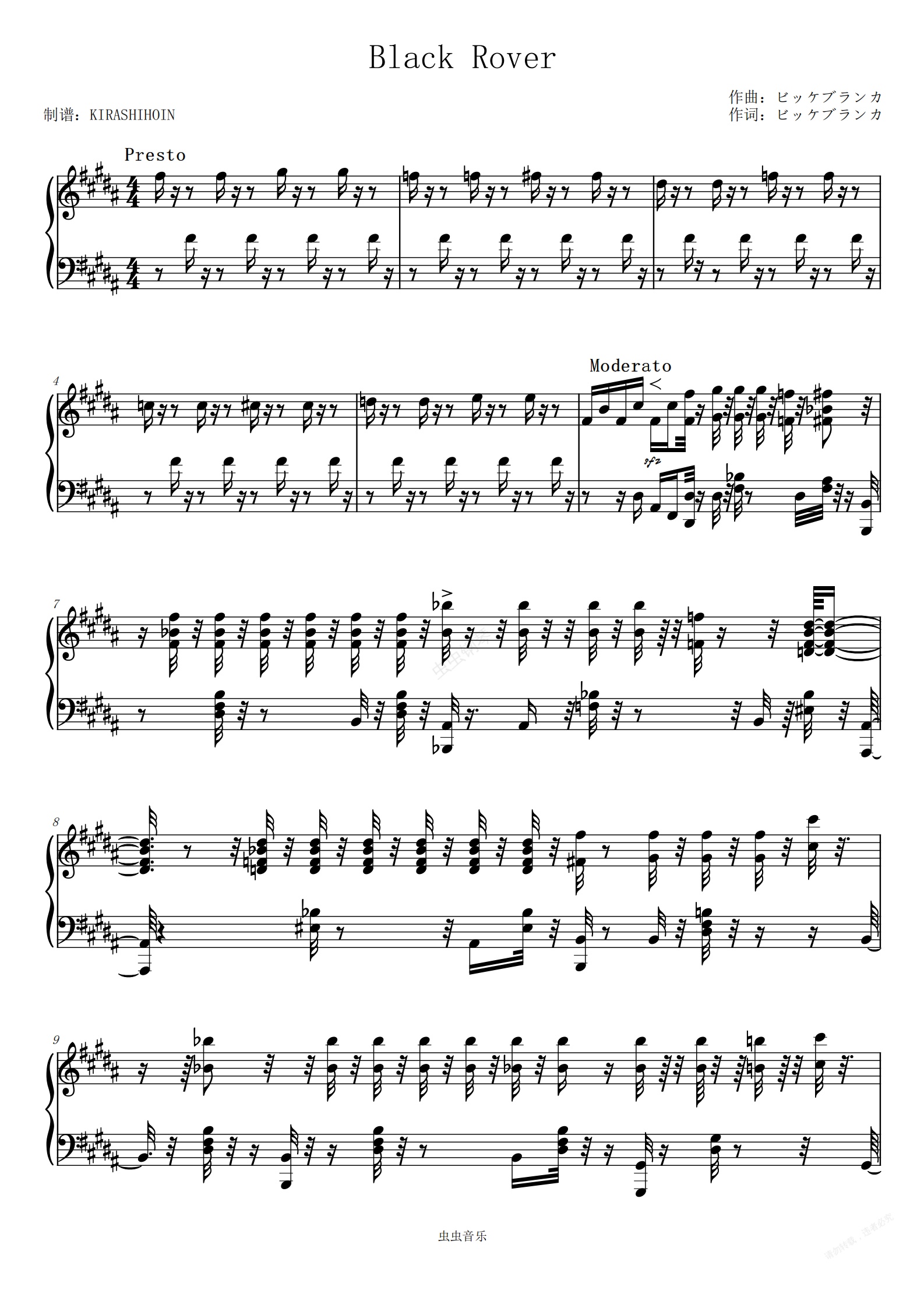 钢琴谱:Black Rover(《黑色五叶草》OP)