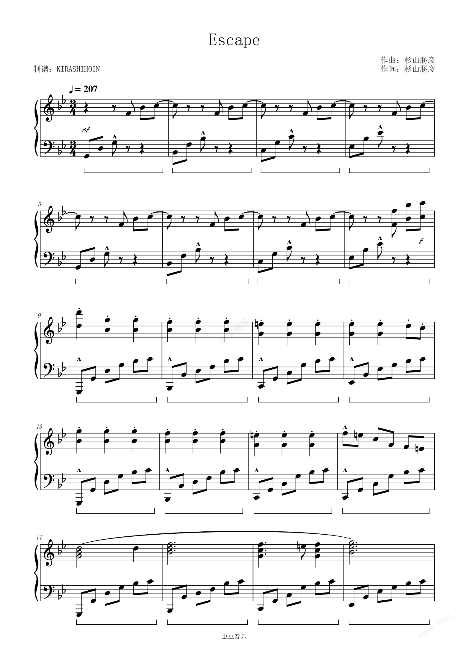 钢琴谱:Escape(《DARLING in the FRANXX》ED)
