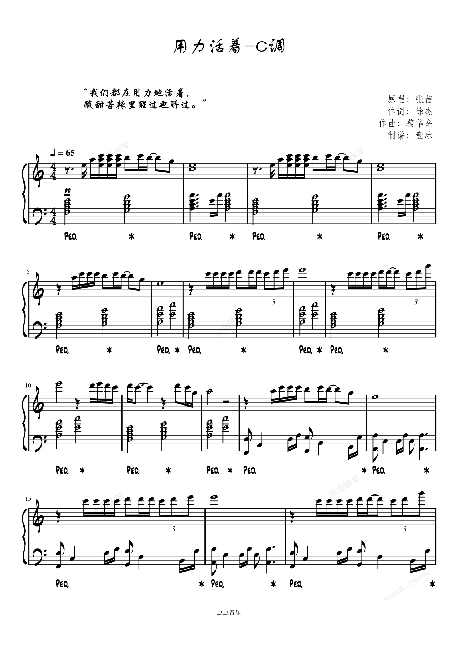 钢琴谱:用力活着//C调-壹冰钢琴