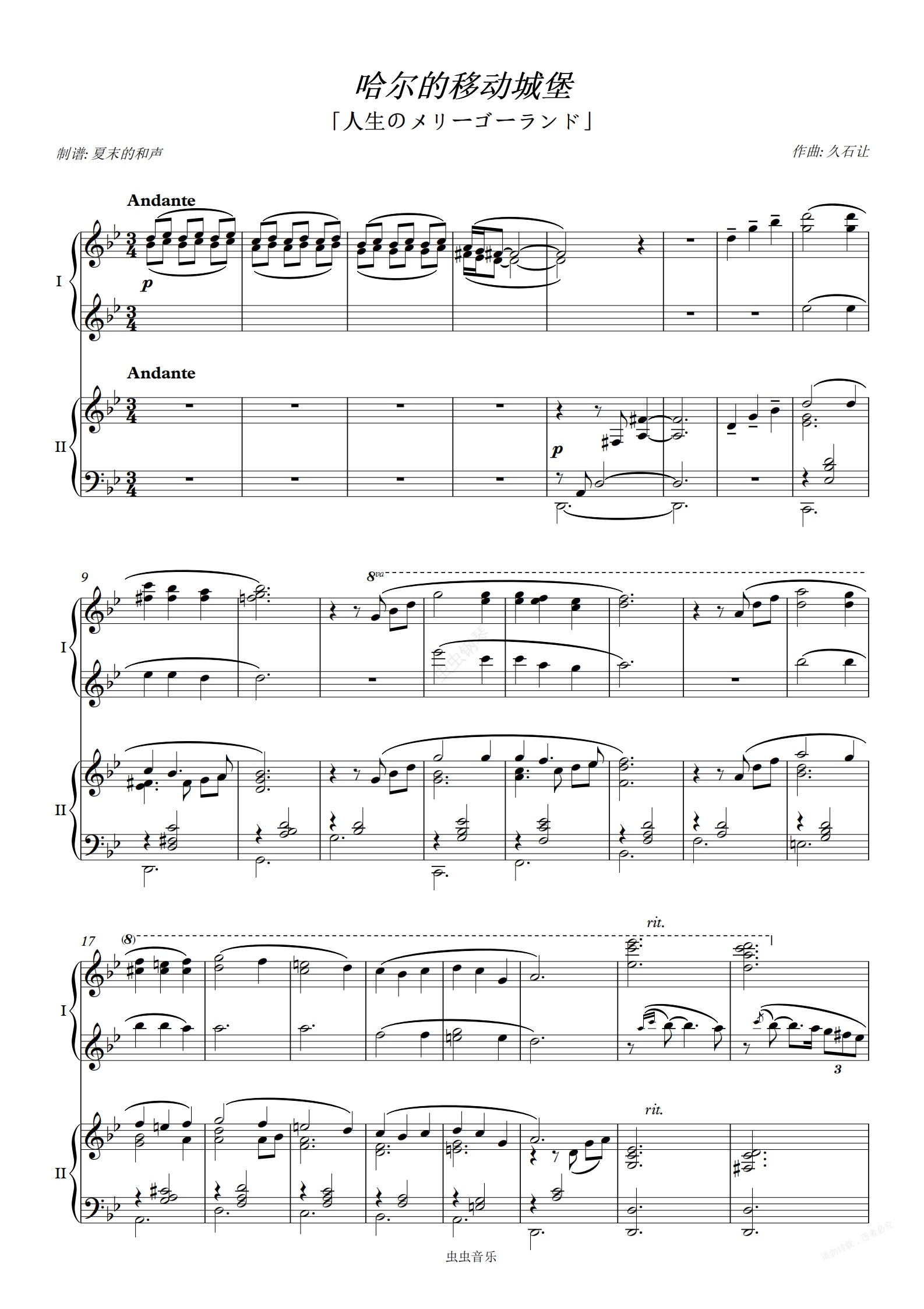 哈尔的移动城堡 - 四手联弹 - 人生的旋转木马 - 久石让 - 人生のメリーゴーランド