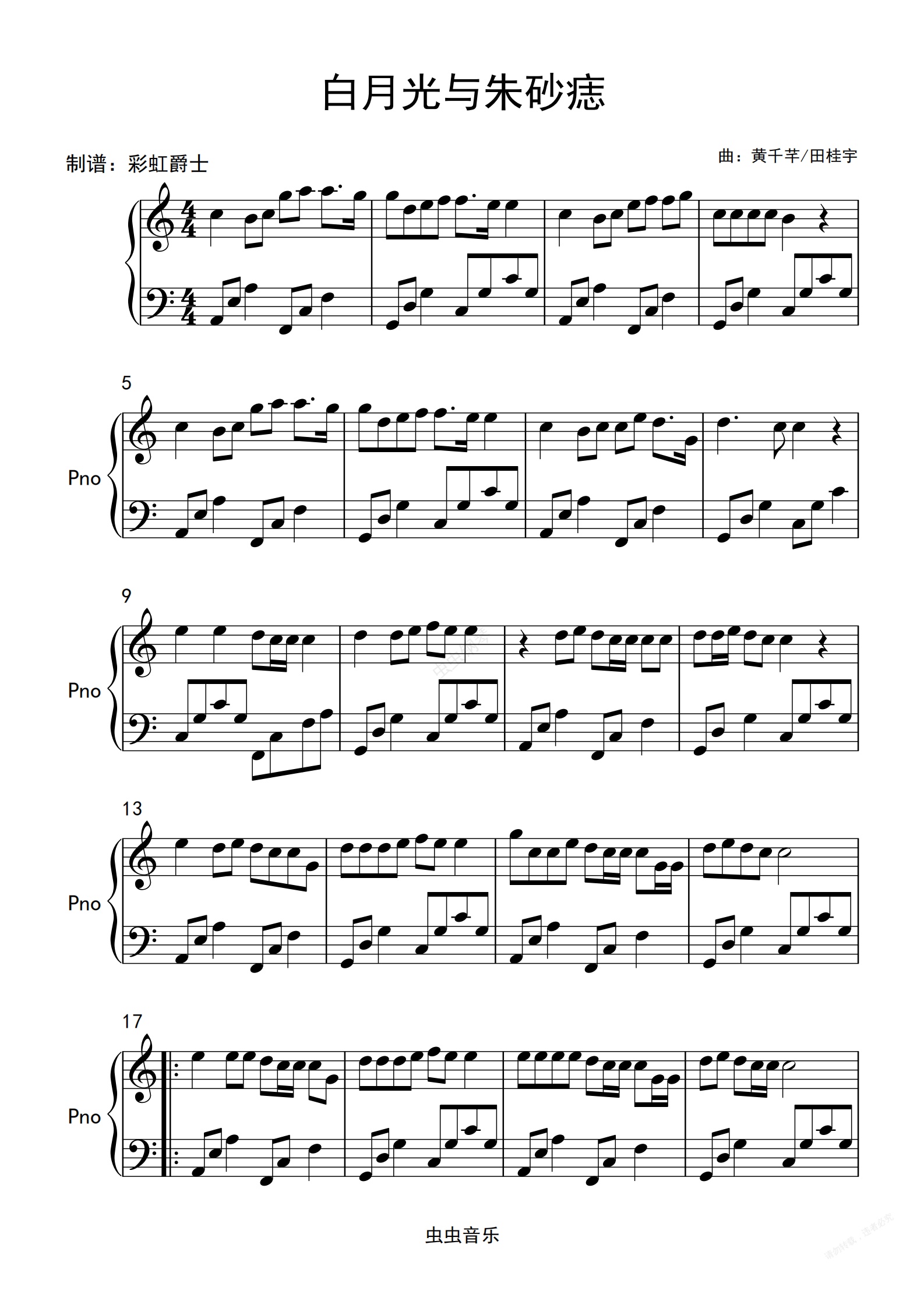 钢琴谱:白月光与朱砂痣-简单版 C调版