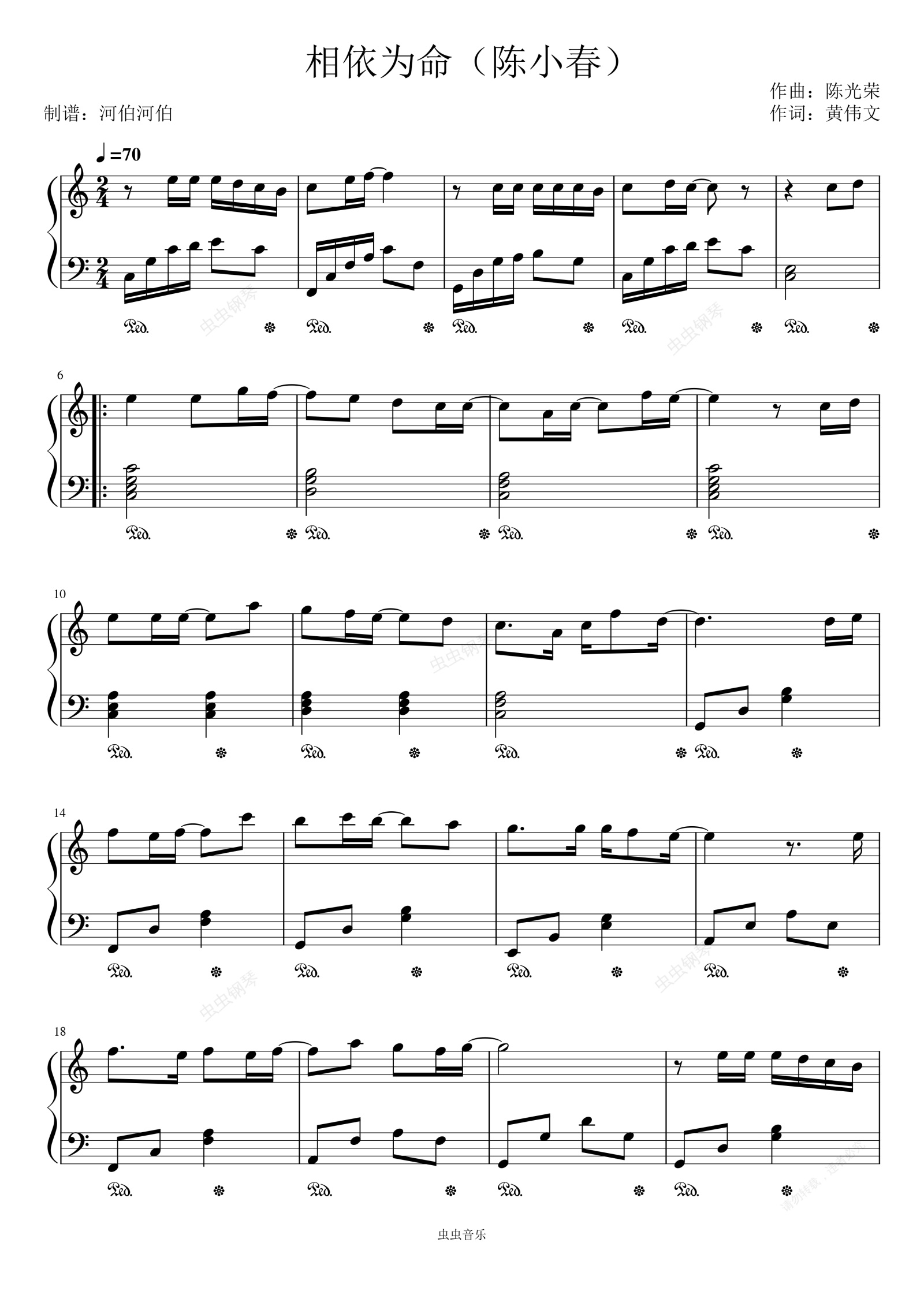 钢琴谱:相依为命 痛哭 陈小春 C调独奏版