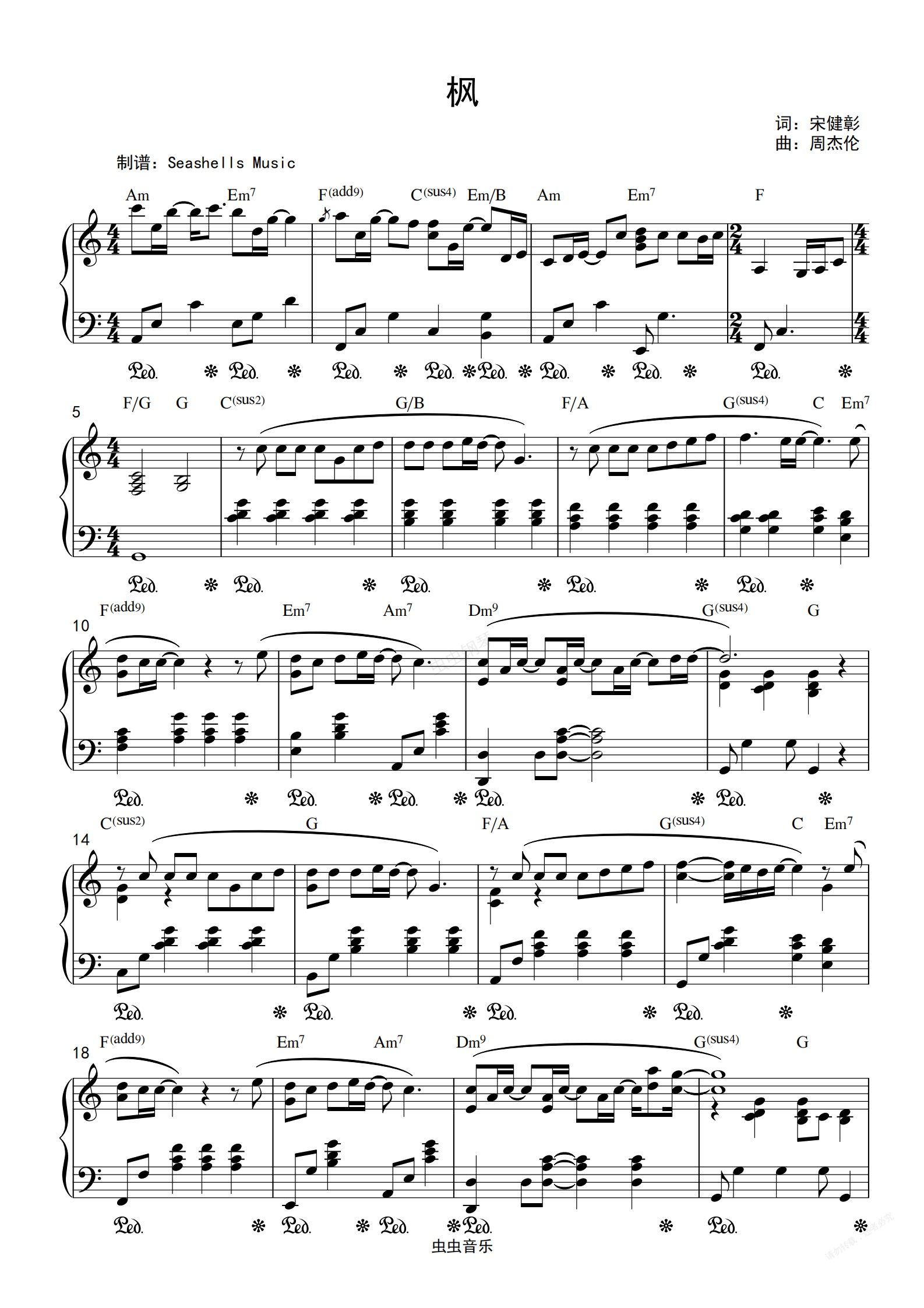 钢琴谱:周杰伦-《枫》精编钢琴独奏